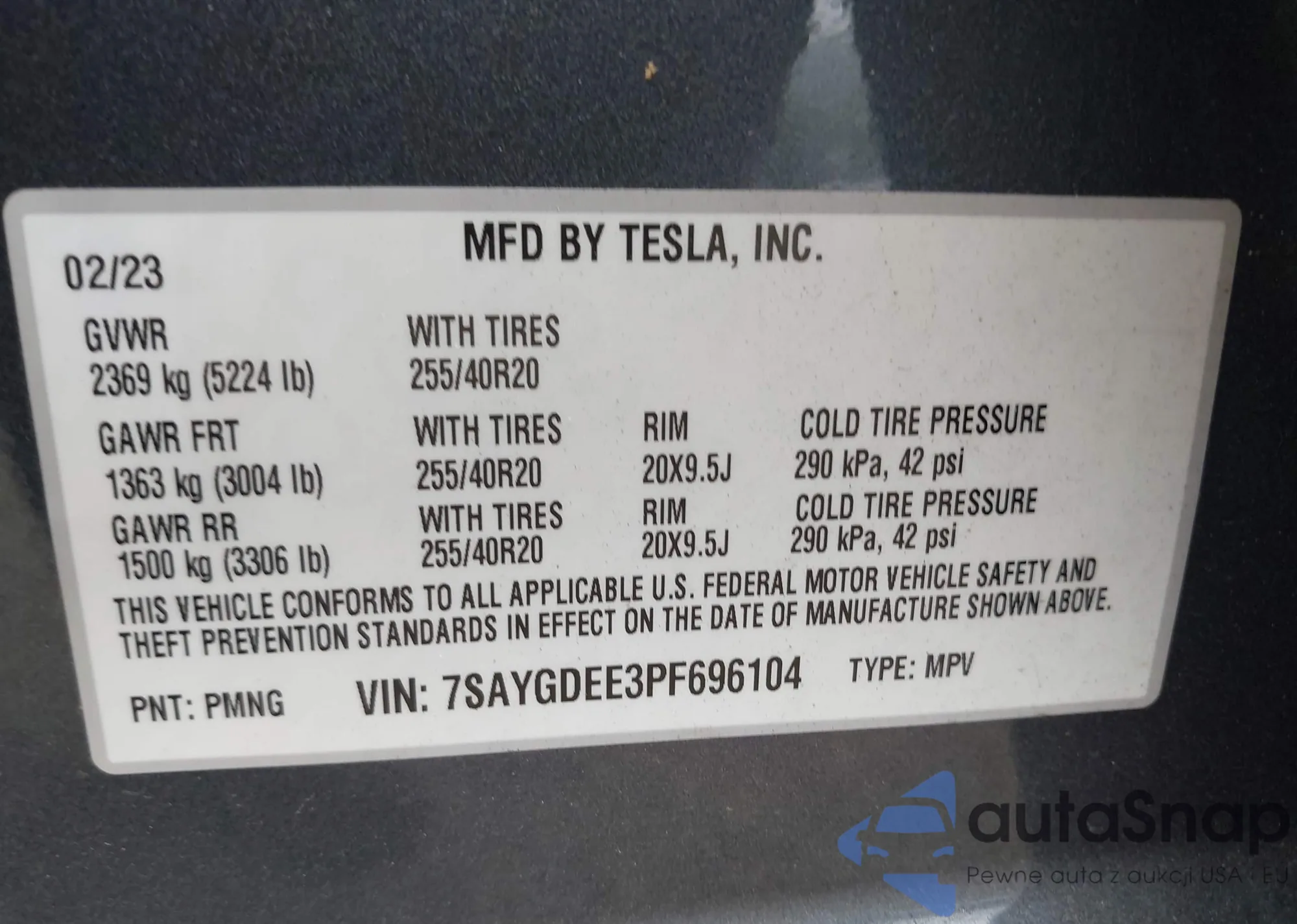 VIN: 7SAYGDEE3PF696104