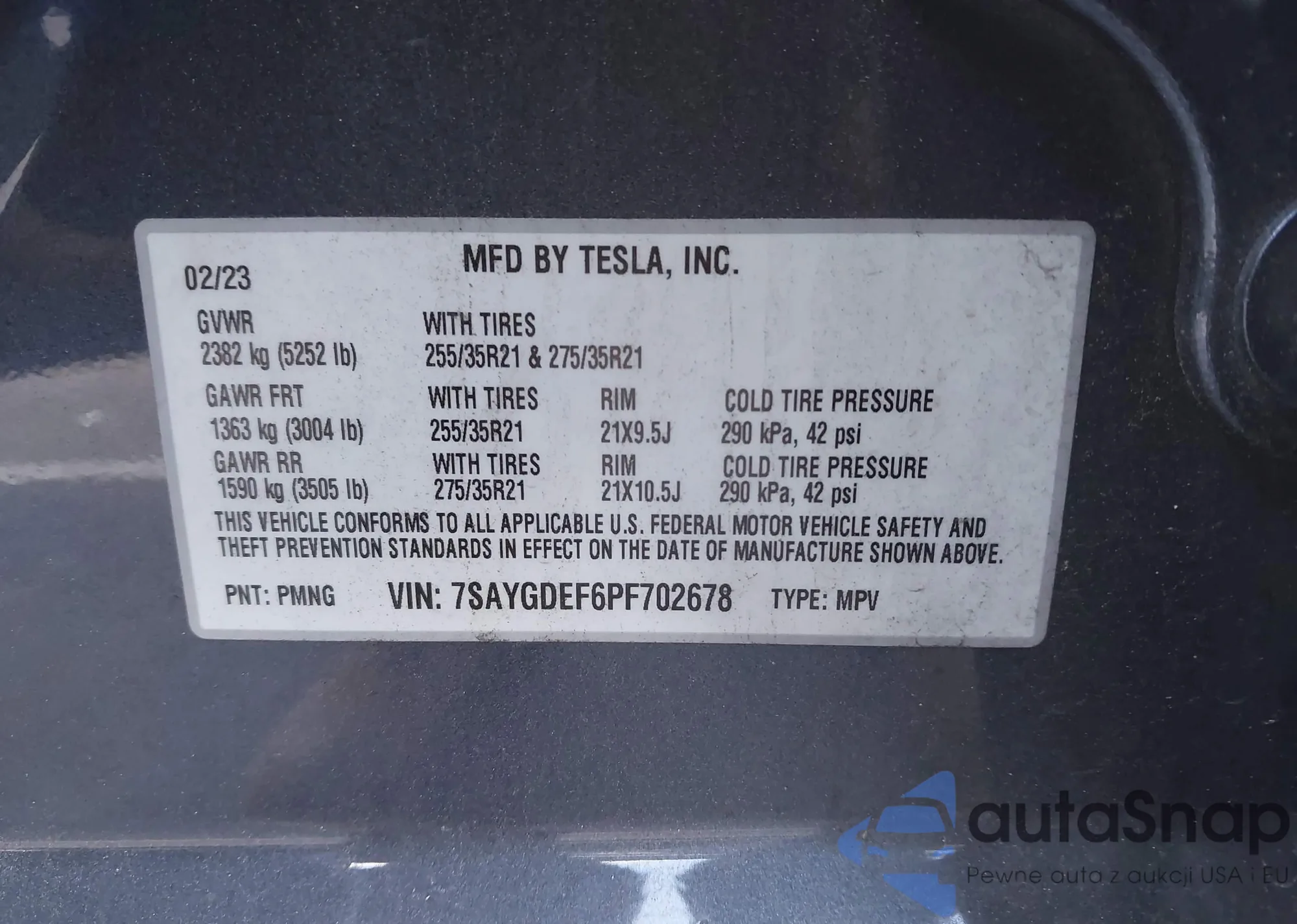 The car Tesla Model Y 2023 (VIN 7SAYGDEF6PF702678) has not been auctioned before. The documents are clean, and the mileage matches or is below the market average. Sold by an insurance company – we recommend purchase. Delivery to the port will take approx. 6–8 weeks.