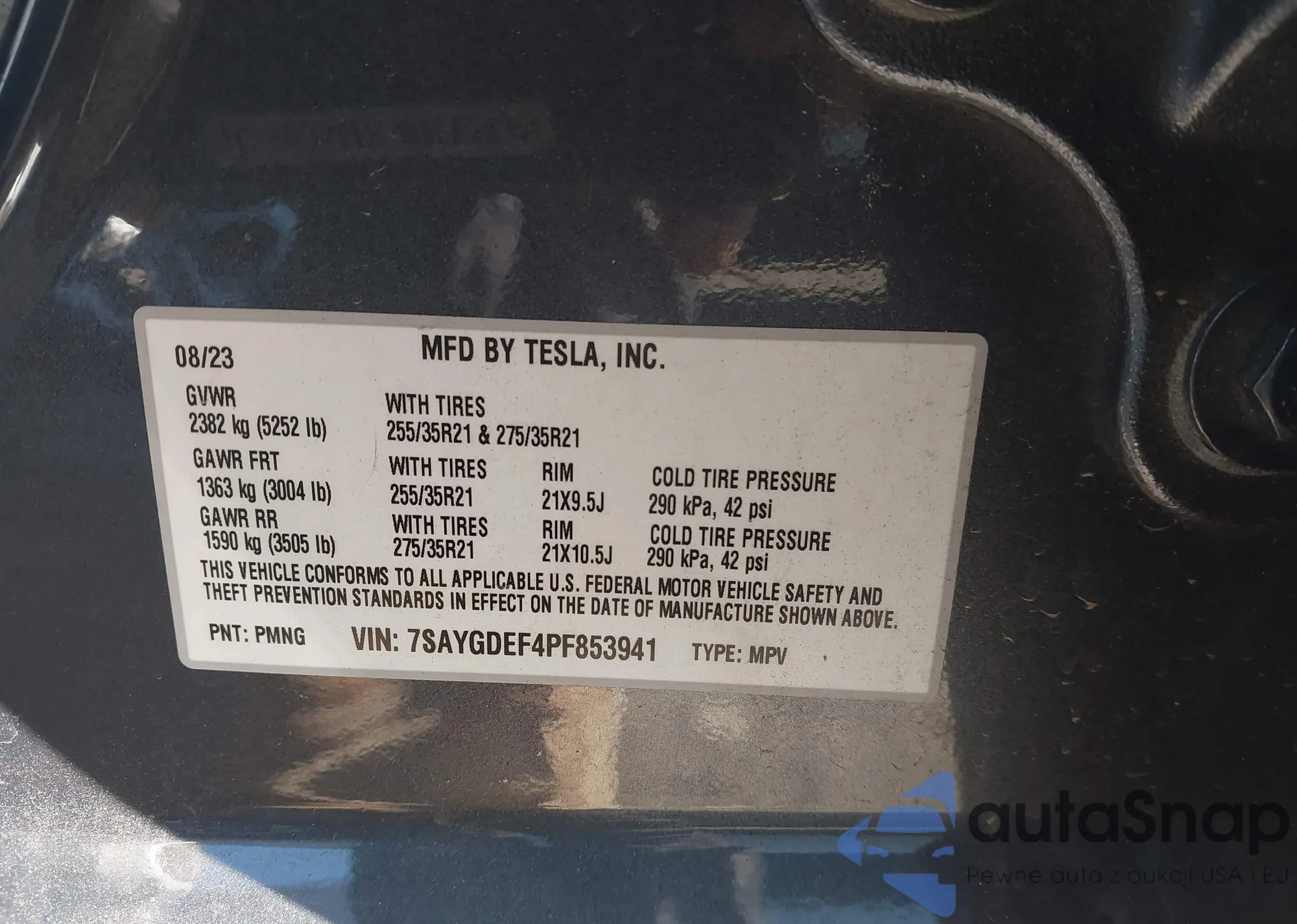 The car Tesla Model Y 2023 (VIN 7SAYGDEF4PF853941) has not been auctioned before. The documents are clean, and the mileage matches or is below the market average. Sold by an insurance company – we recommend purchase. Delivery to the port will take approx. 6–8 weeks.