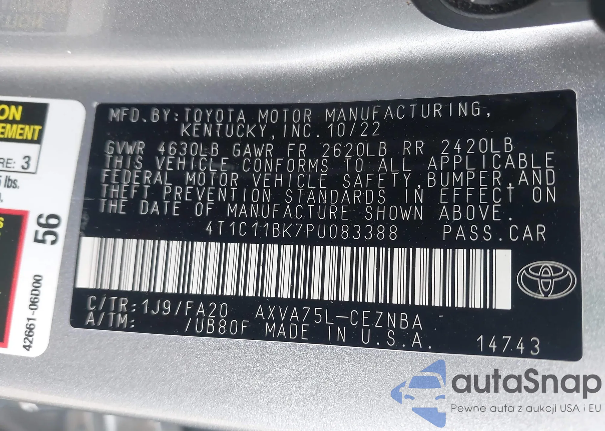 VIN: 4T1C11BK7PU083388