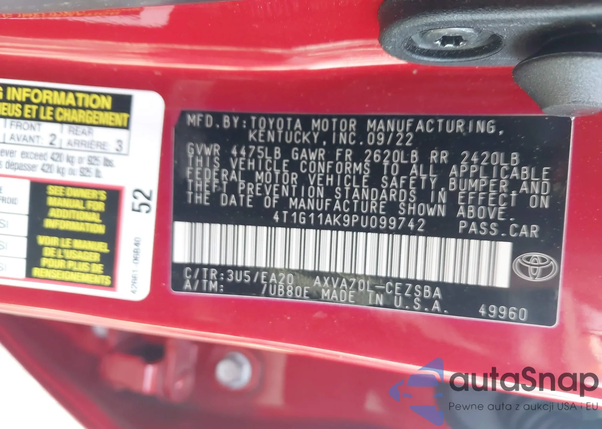 VIN: 4T1G11AK9PU099742