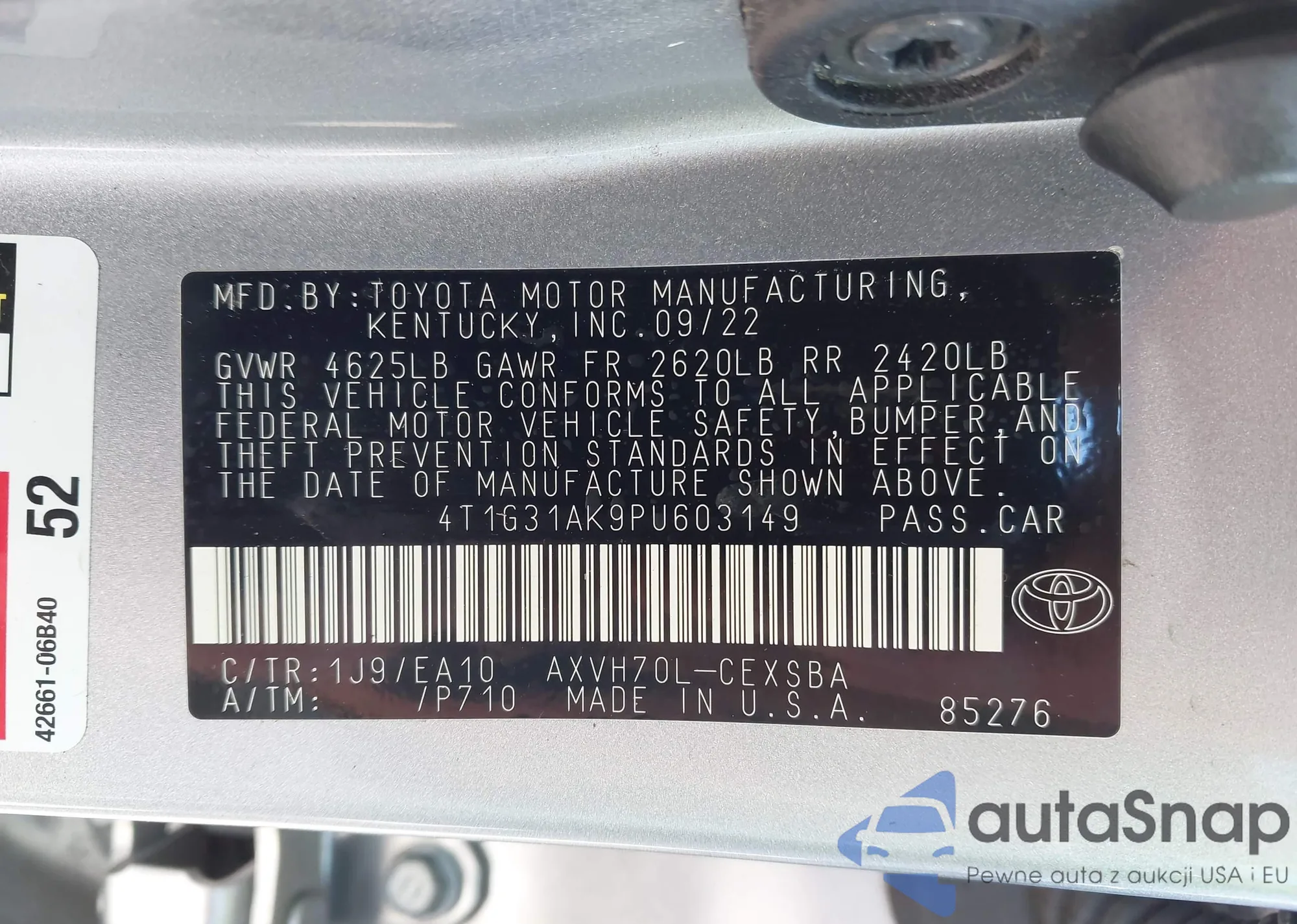 VIN: 4T1G31AK9PU603149