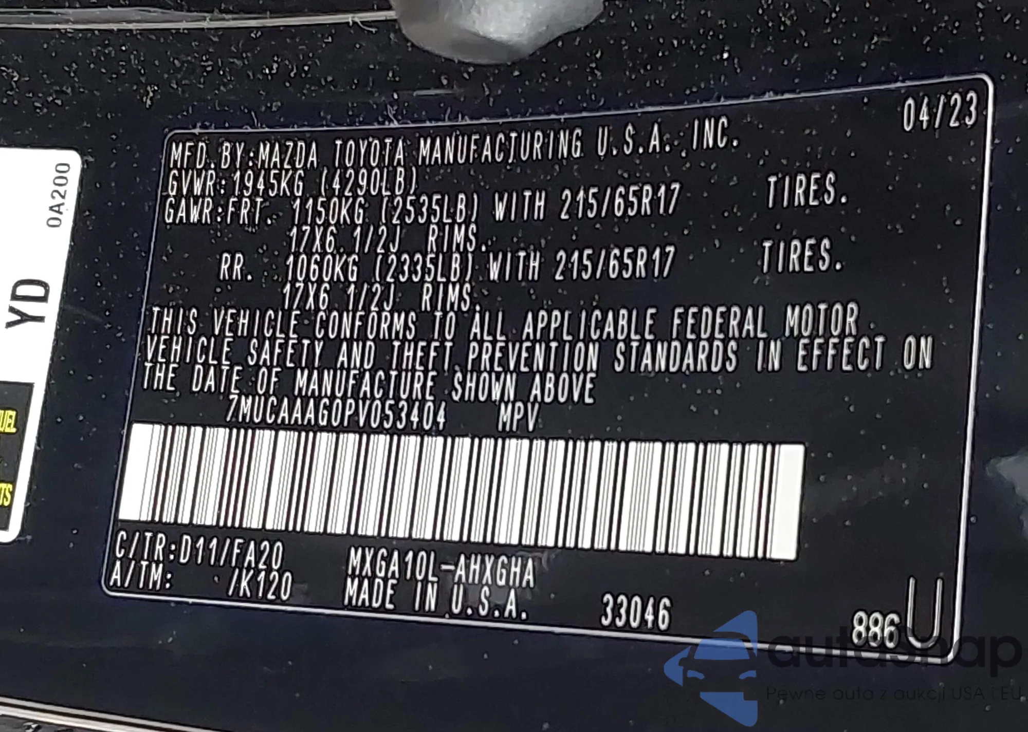 VIN: 7MUCAAAG0PV053404