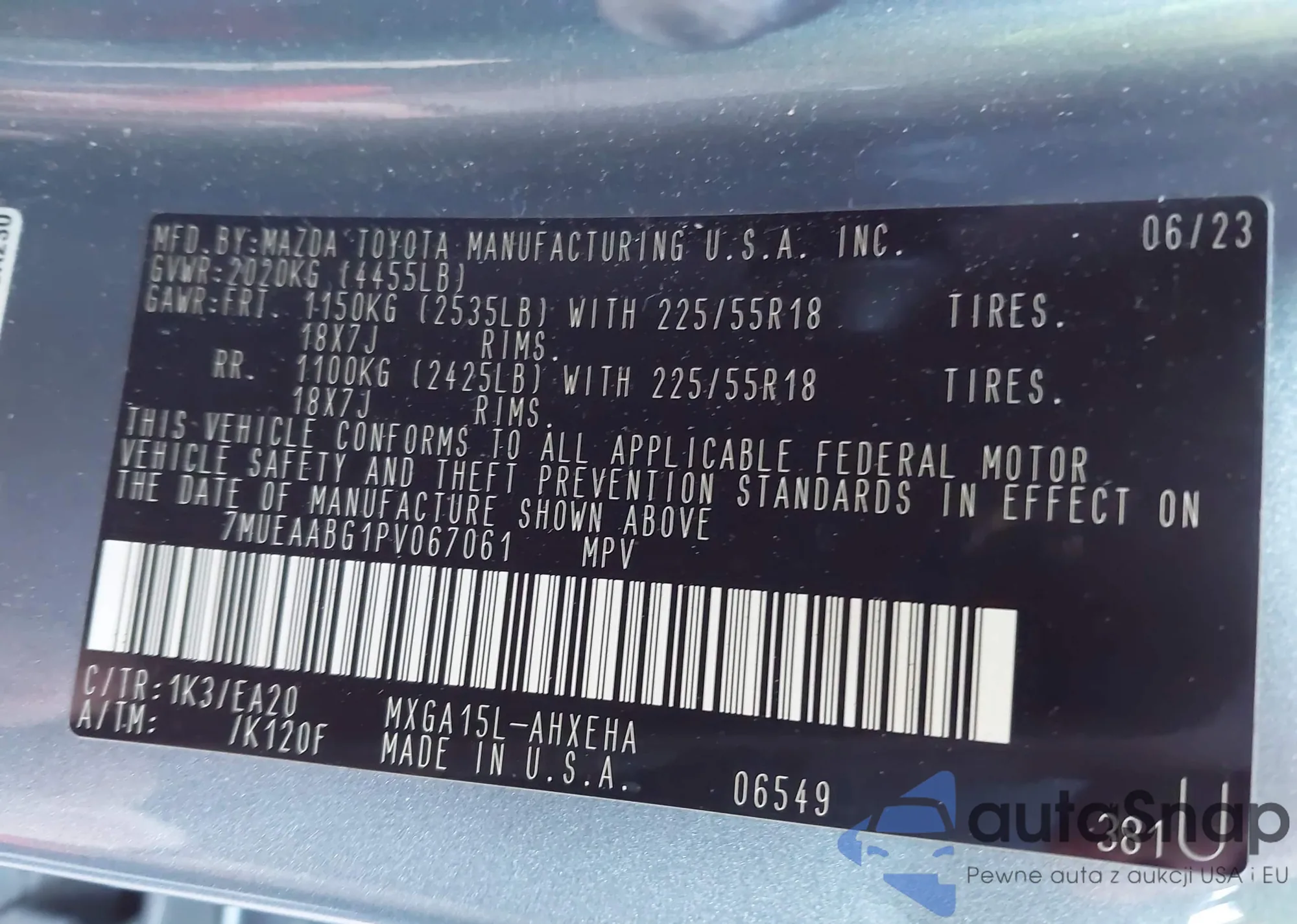 VIN: 7MUEAABG1PV067061