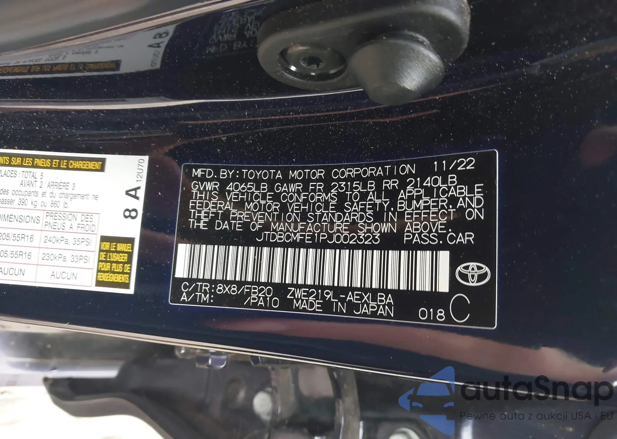 The car Toyota Corolla 2023 (VIN JTDBCMFE1PJ002323) has not been auctioned before. The documents are clean, and the mileage matches or is below the market average. Sold by an insurance company – we recommend purchase. Delivery to the port will take approx. 6–8 weeks.