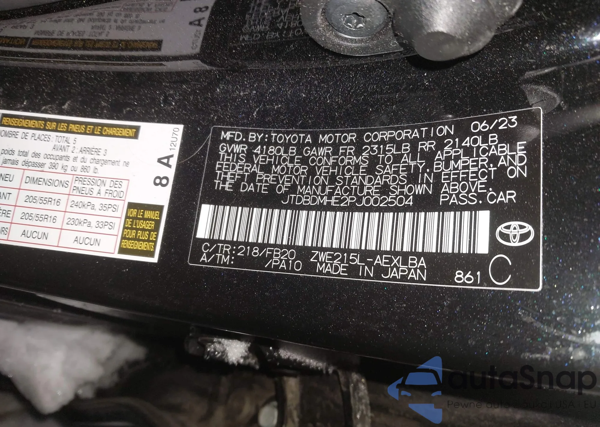 The car Toyota Corolla 2023 (VIN JTDBDMHE2PJ002504) has not been auctioned before. The documents are clean, and the mileage matches or is below the market average. Sold by an insurance company – we recommend purchase. Delivery to the port will take approx. 6–8 weeks.
