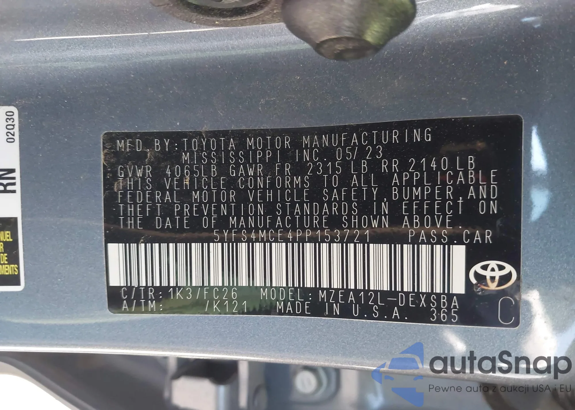 The car Toyota Corolla 2023 (VIN 5YFS4MCE4PP153721) has not been auctioned before. The documents are clean, and the mileage matches or is below the market average. Sold by an insurance company – we recommend purchase. Delivery to the port will take approx. 6–8 weeks.