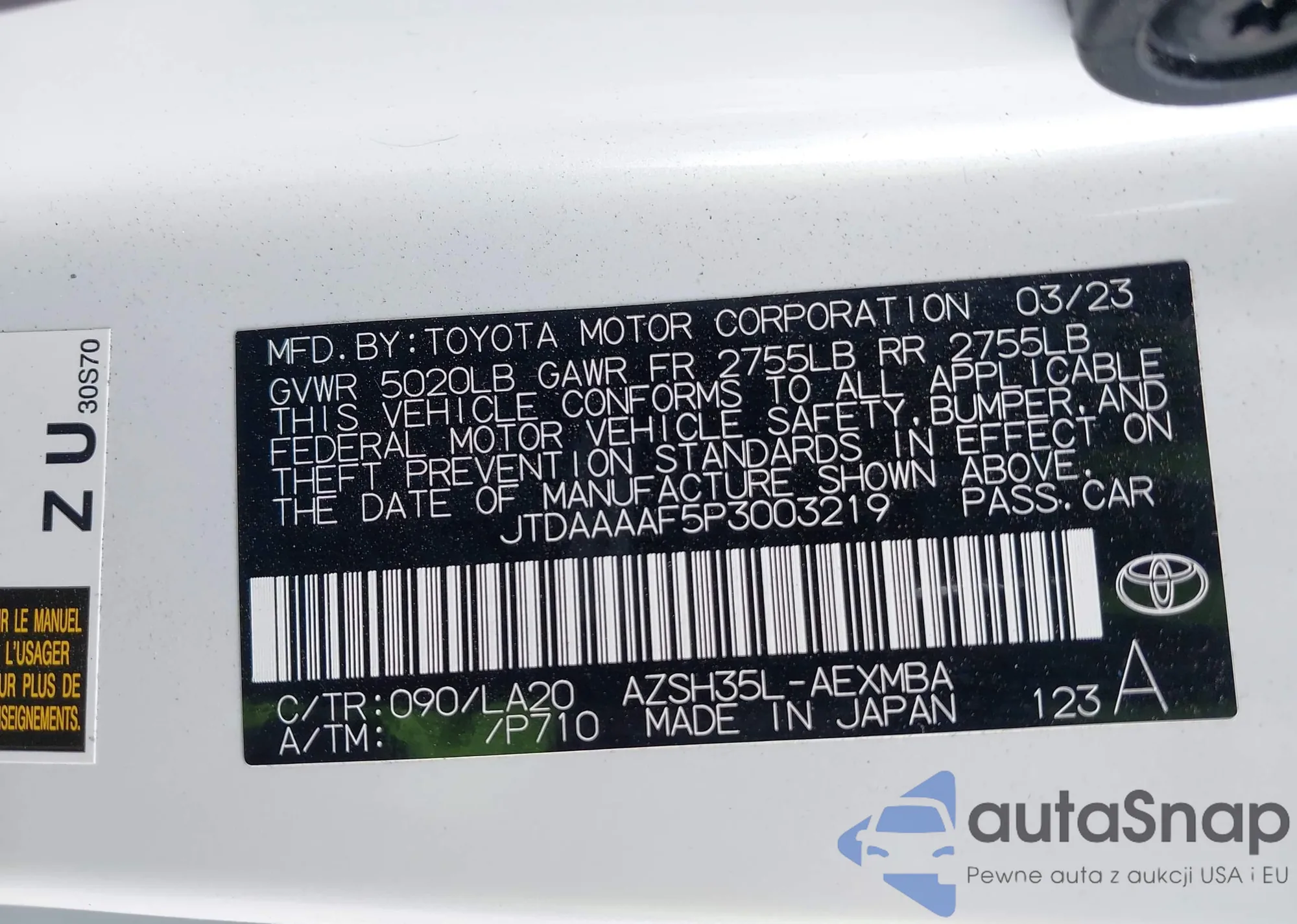 VIN: JTDAAAAF5P3003219