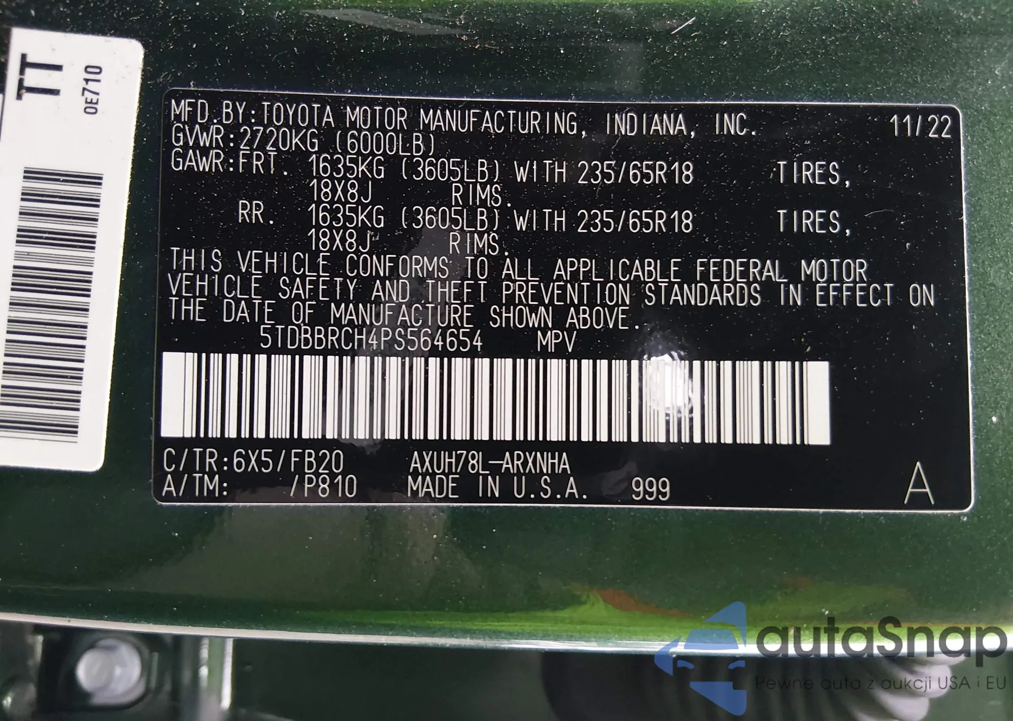 VIN: 5TDBBRCH4PS564654