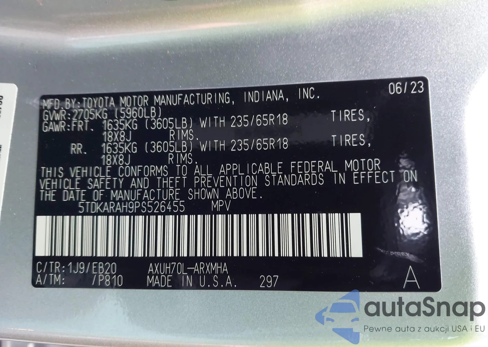 VIN: 5TDKARAH9PS526455