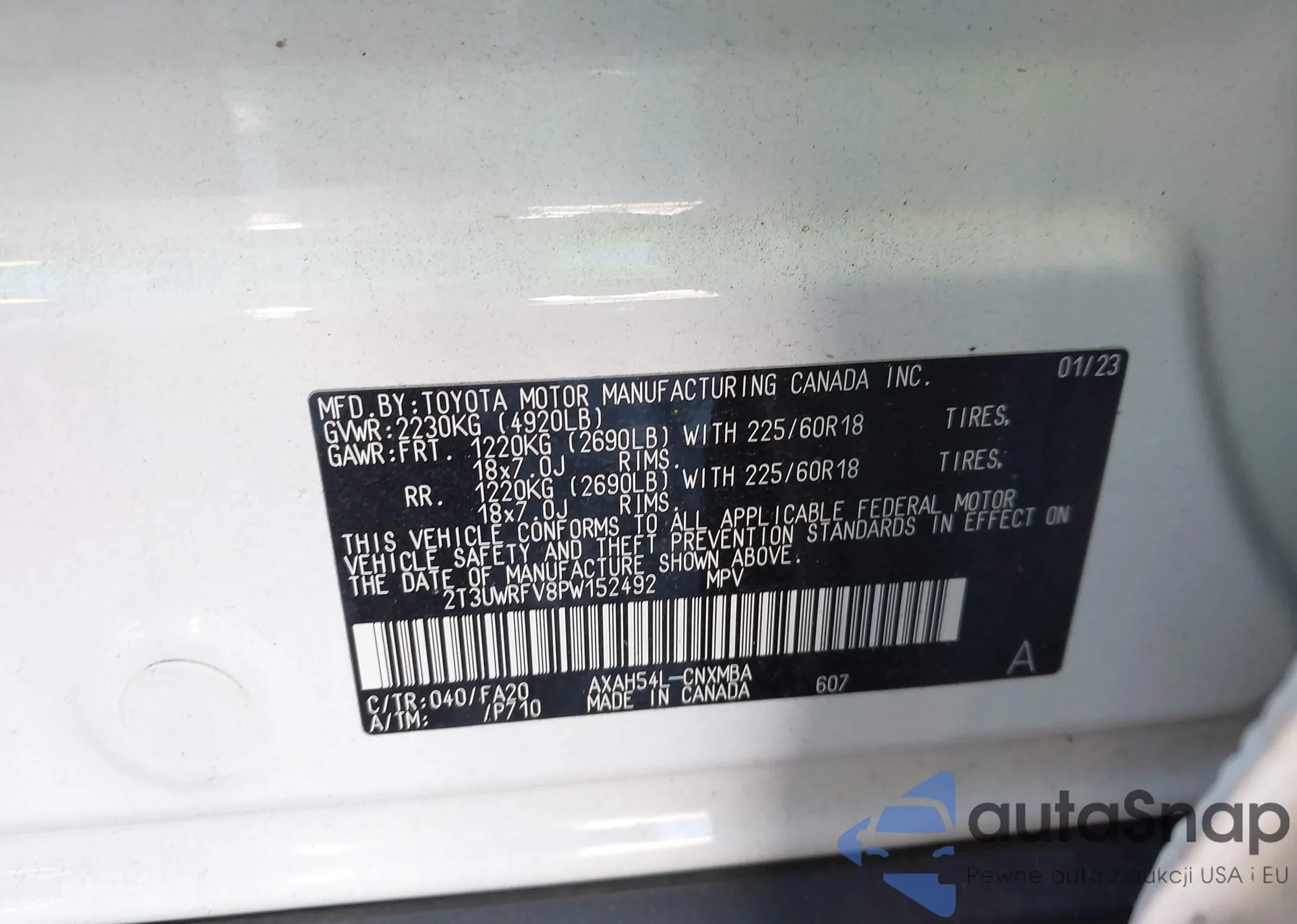 VIN: 2T3UWRFV8PW152492