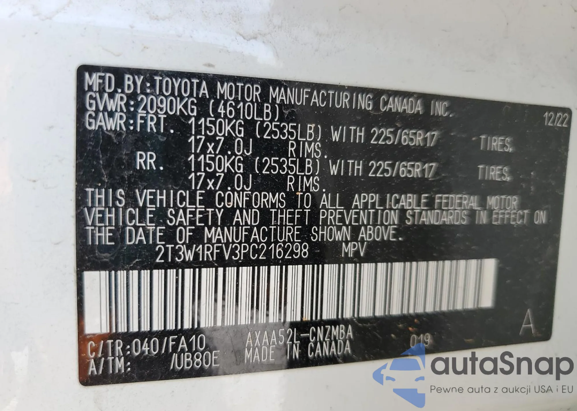 VIN: 2T3W1RFV3PC216298