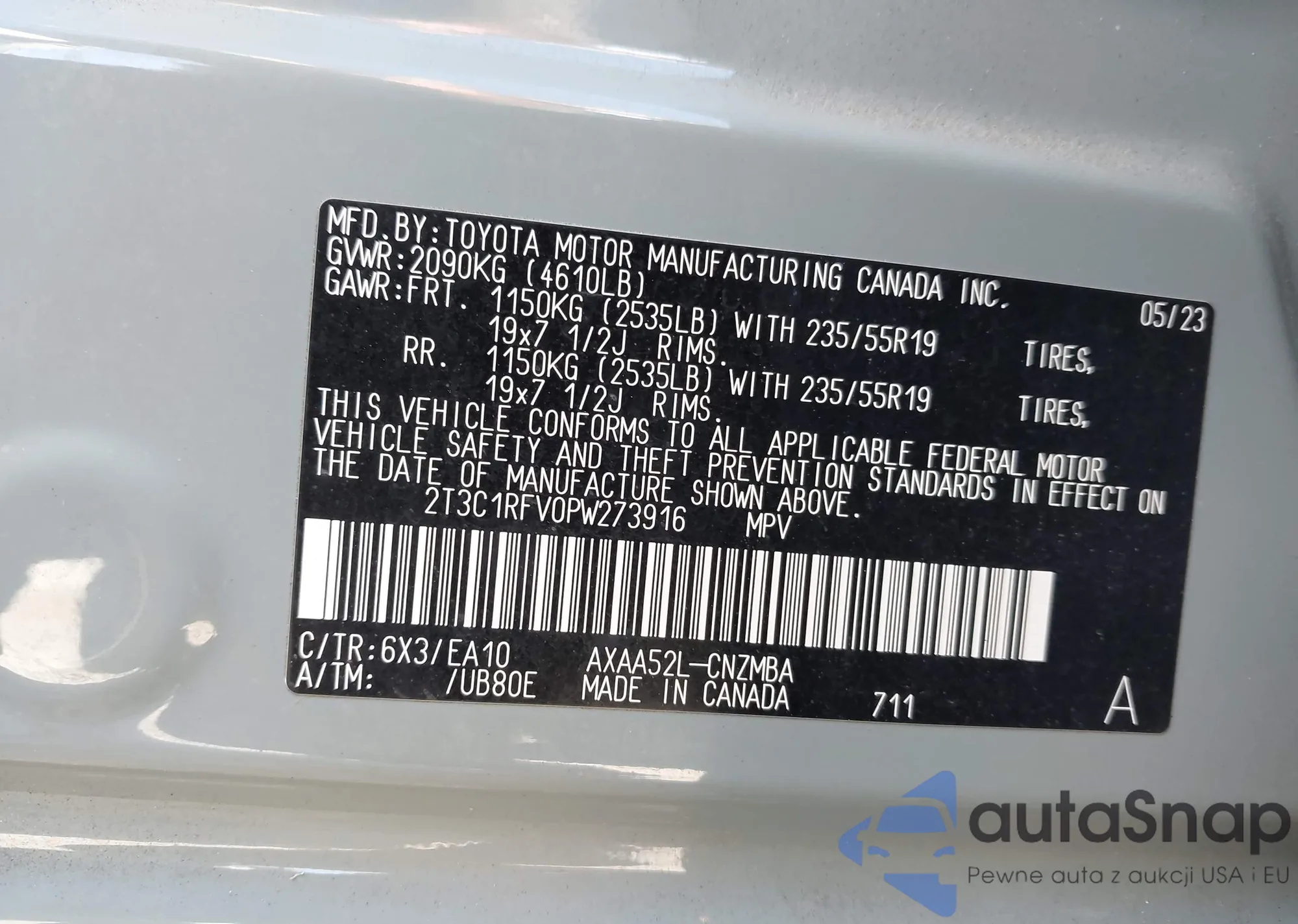 VIN: 2T3C1RFV0PW273916