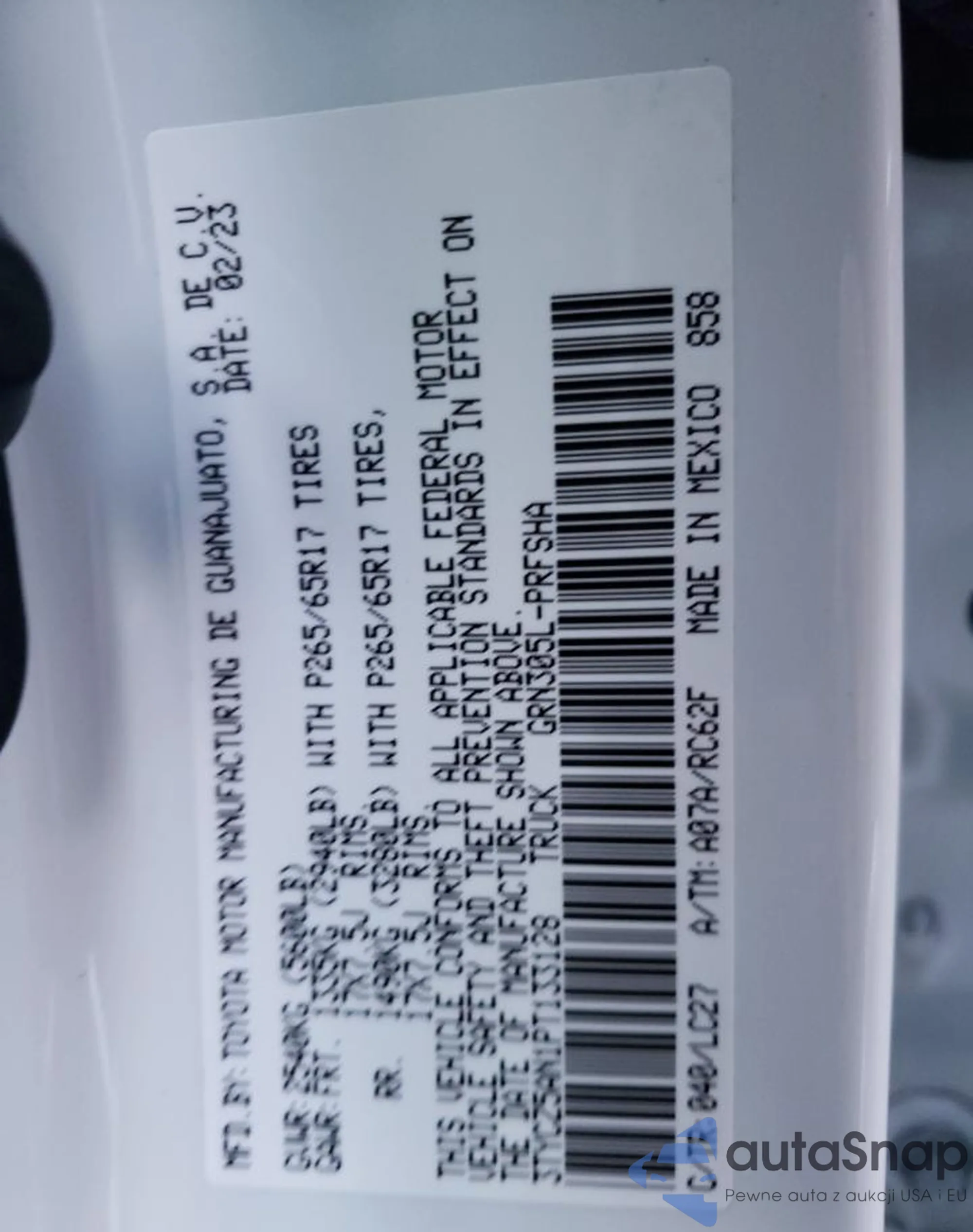 Toyota Tacoma 2023 – Vehicle History (Sold at COPART)