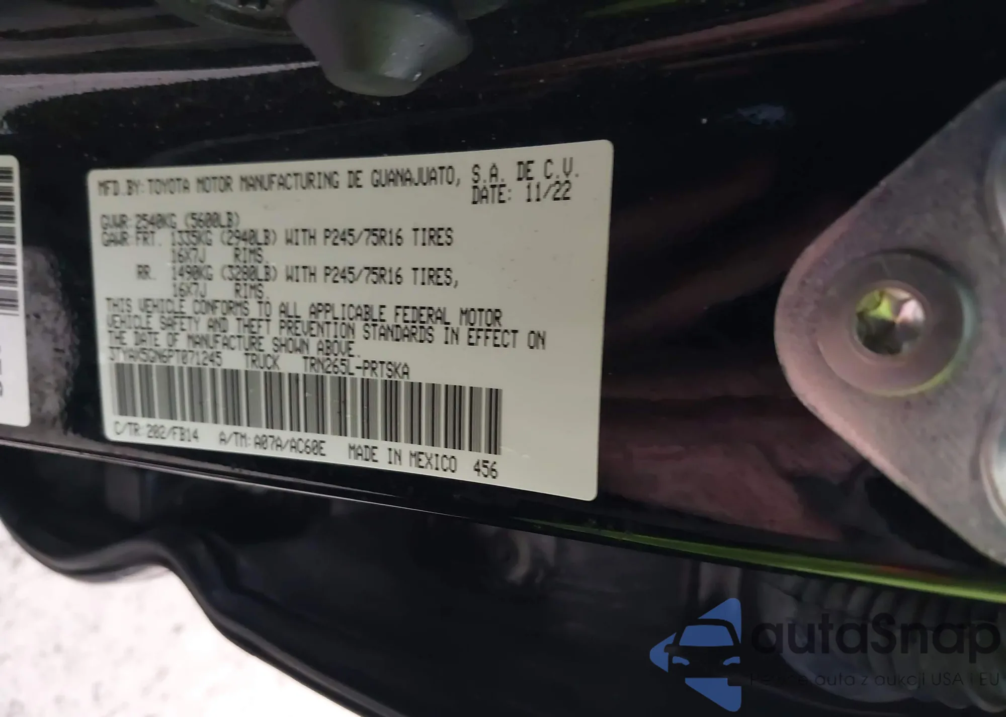The car Toyota Tacoma 2023 (VIN 3TYAX5GN6PT071245) has not been auctioned before. The documents are clean, and the mileage matches or is below the market average. Sold by an insurance company – we recommend purchase. Delivery to the port will take approx. 6–8 weeks.