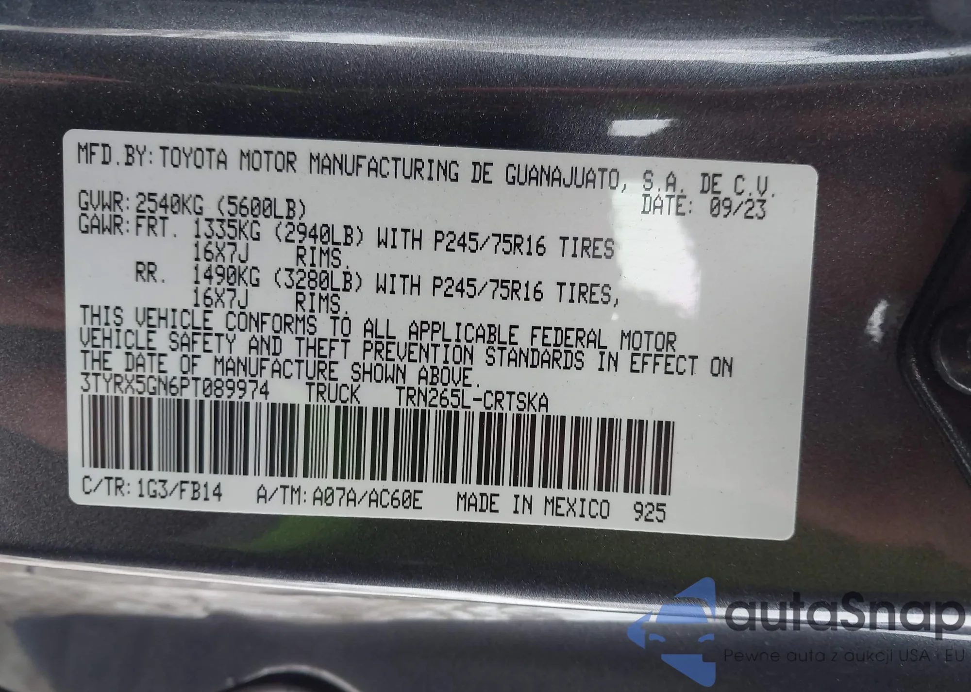 VIN: 3TYRX5GN6PT089974