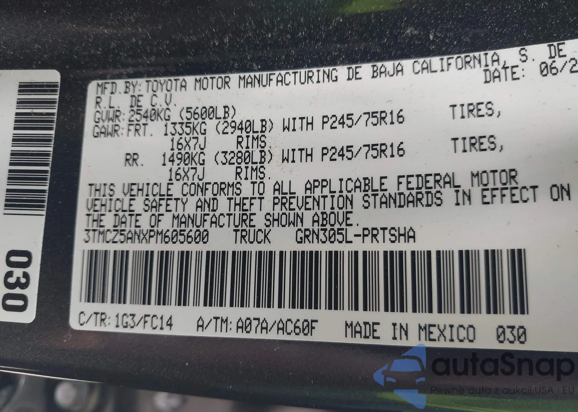 VIN: 3TMCZ5ANXPM605600