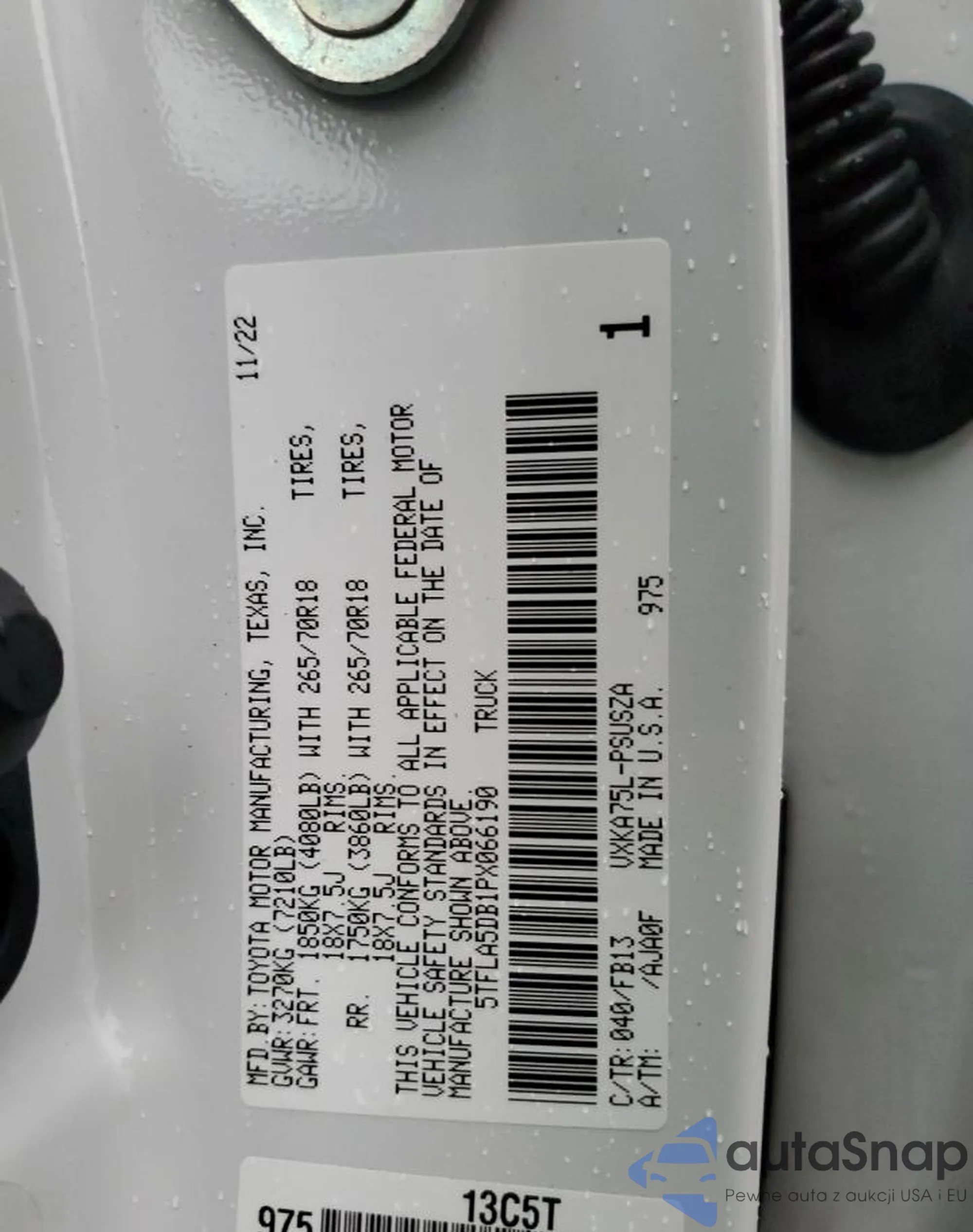 The car Toyota Tundra 2023 (VIN 5TFLA5DB1PX066190) has already been auctioned 1 times and/or is sold by an unverified seller. We recommend checking the Carfax report and confirming registration possibilities before purchase.