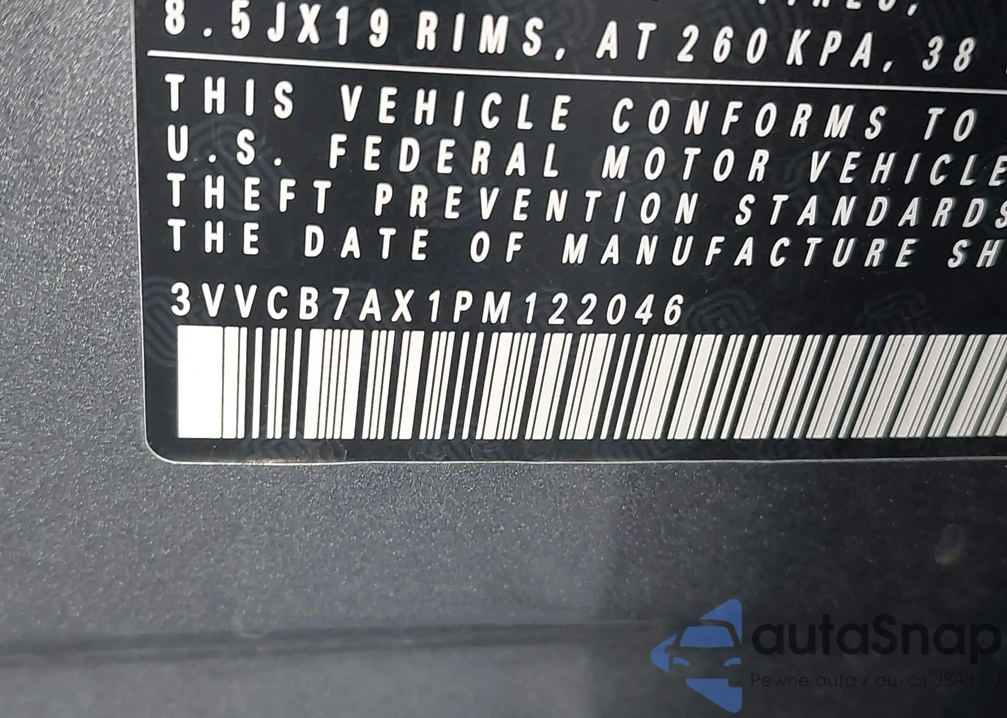VIN: 3VVCB7AX1PM122046