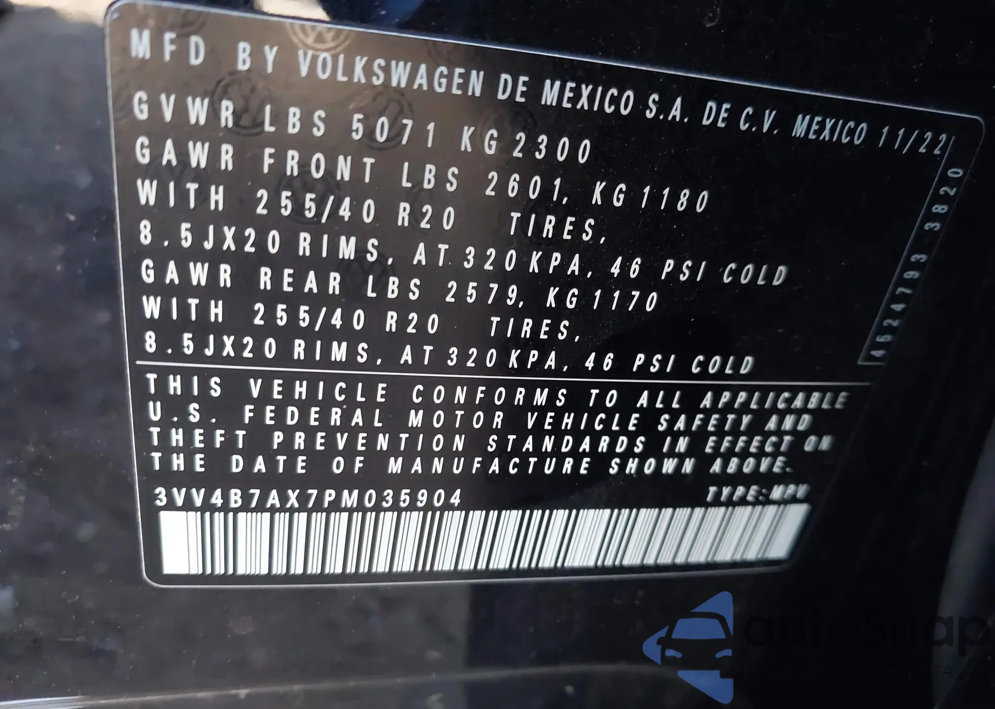 VIN: 3VV4B7AX7PM035904