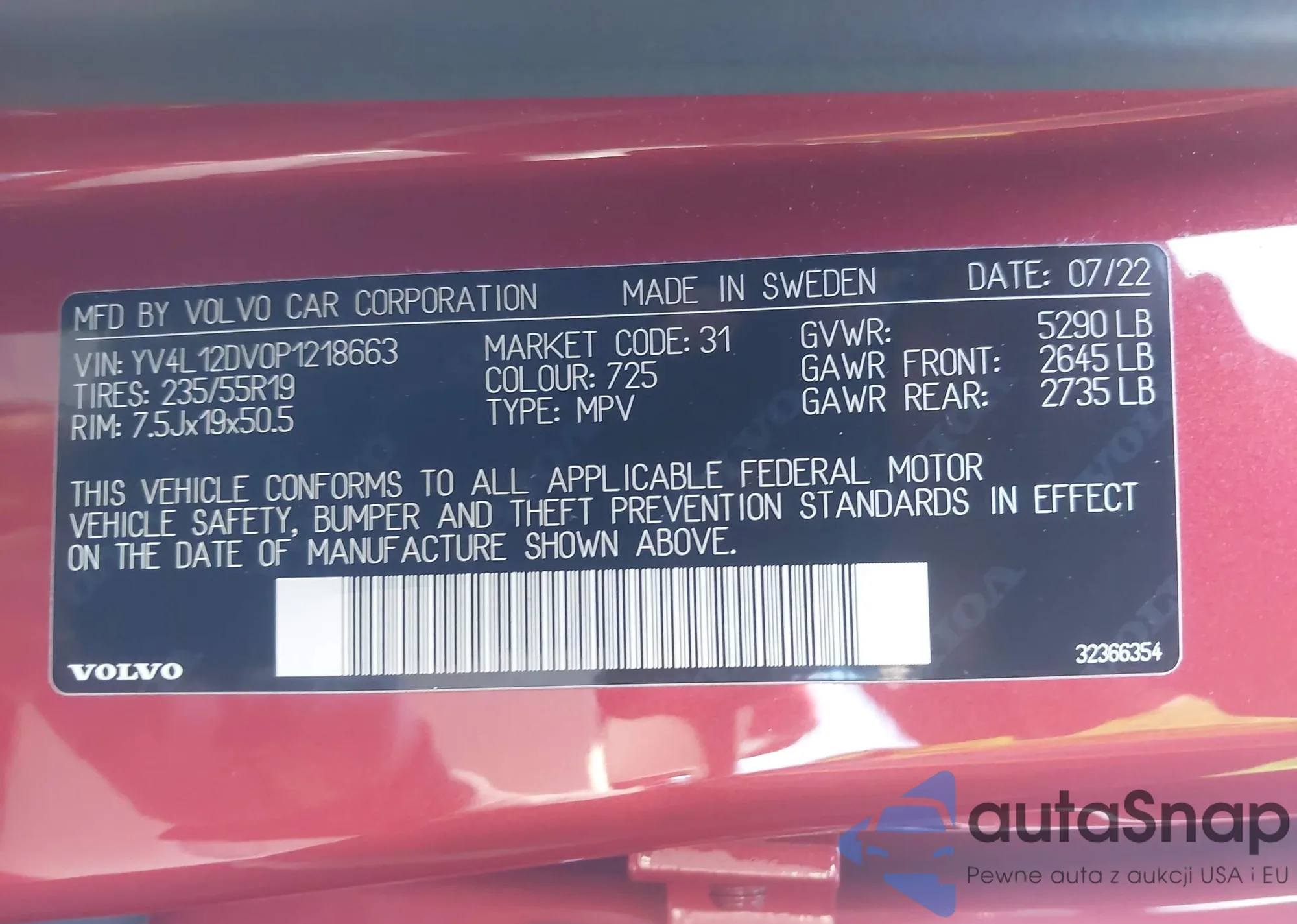 • VIN: YV4L12DV0P1218663