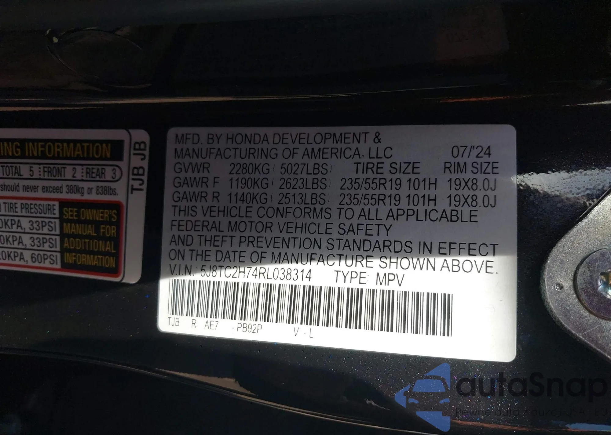 VIN: 5J8TC2H74RL038314