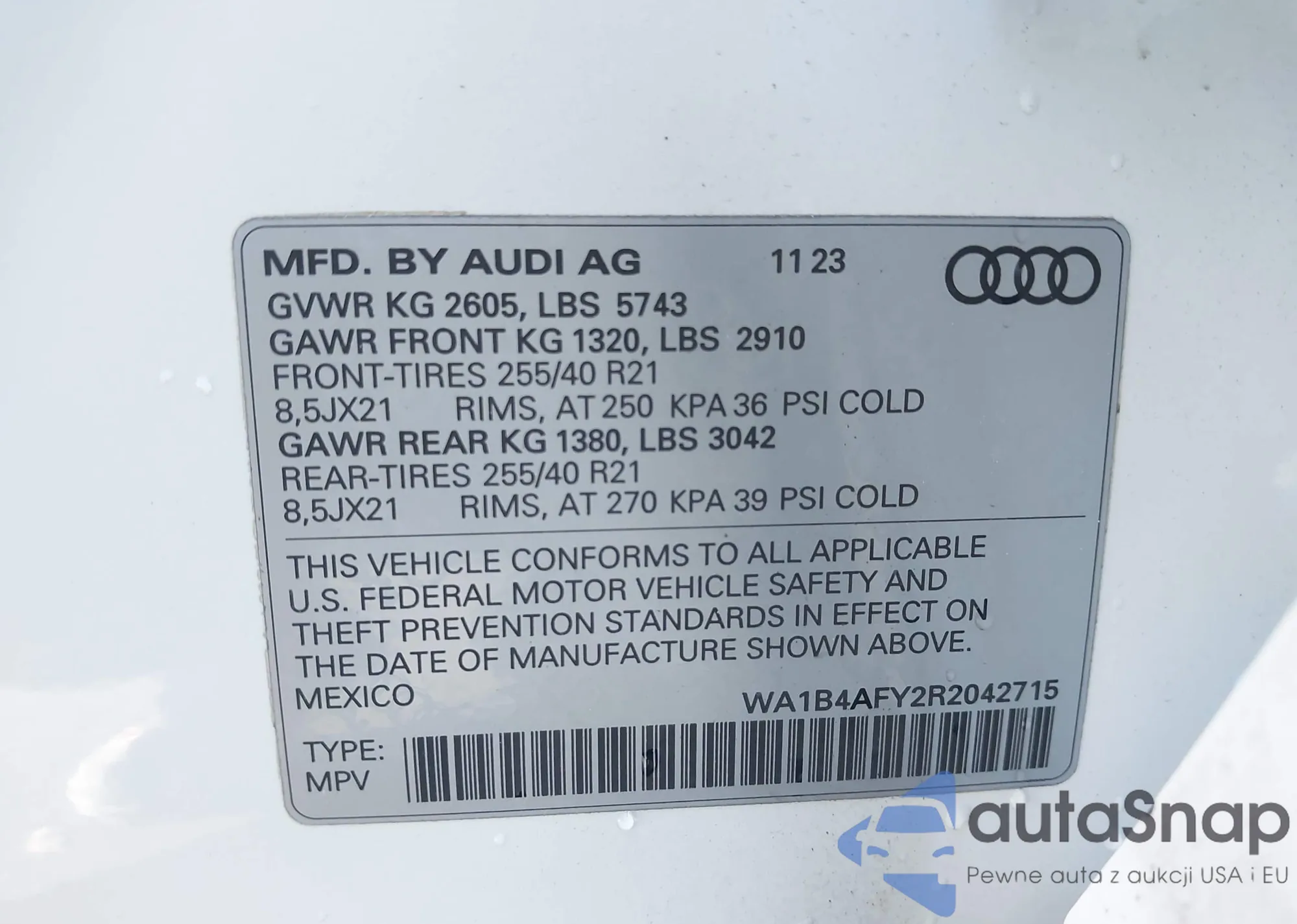 • VIN: WA1B4AFY2R2042715