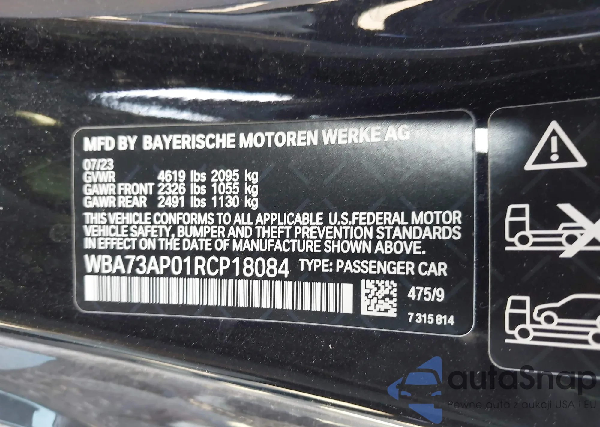 VIN: WBA73AP01RCP18084