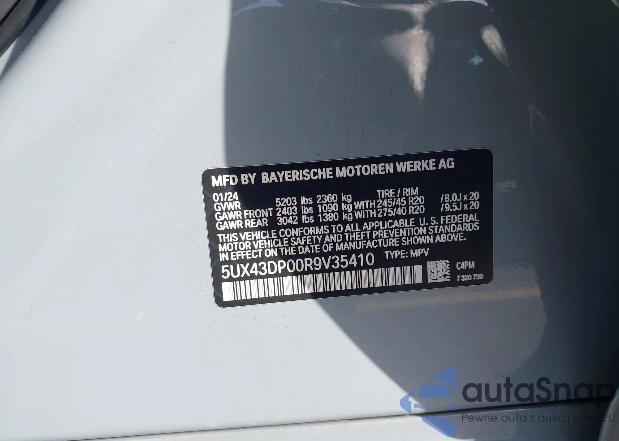 • VIN: 5UX43DP00R9V35410