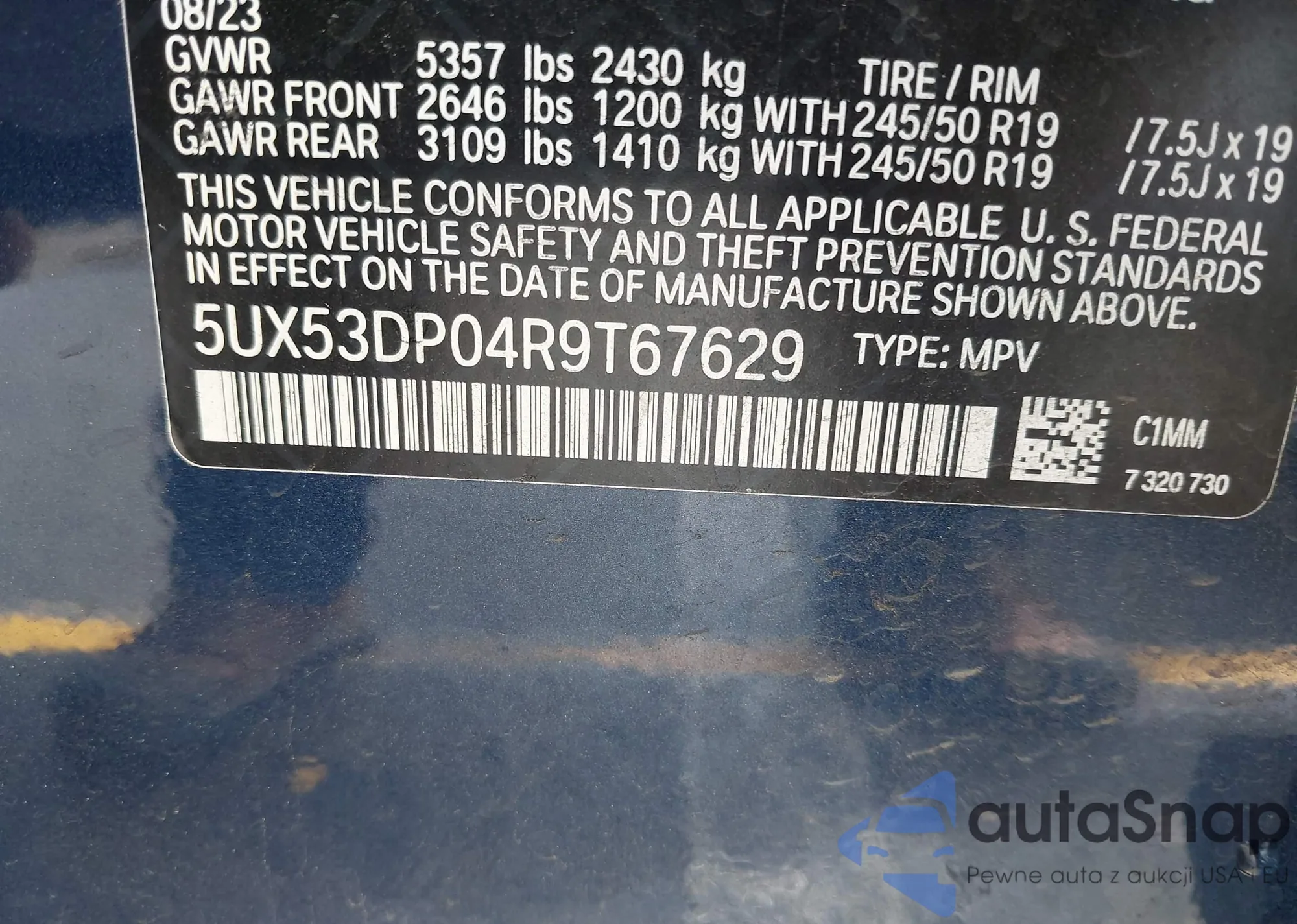 The car BMW X3 2024 (VIN 5UX53DP04R9T67629) has not been auctioned before. The documents are clean, and the mileage matches or is below the market average. Sold by an insurance company – we recommend purchase. Delivery to the port will take approx. 6–8 weeks.