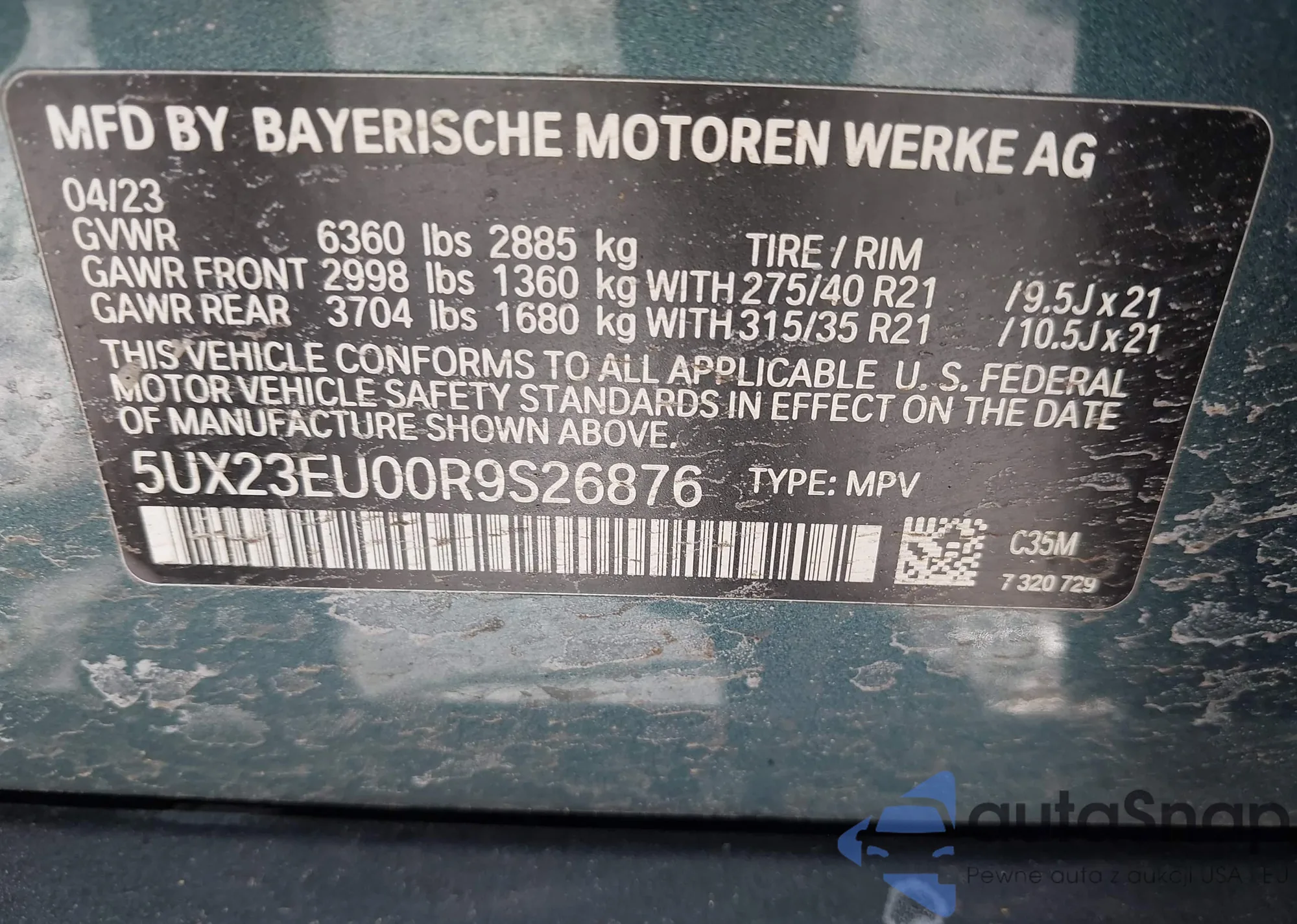 VIN: 5UX23EU00R9S26876