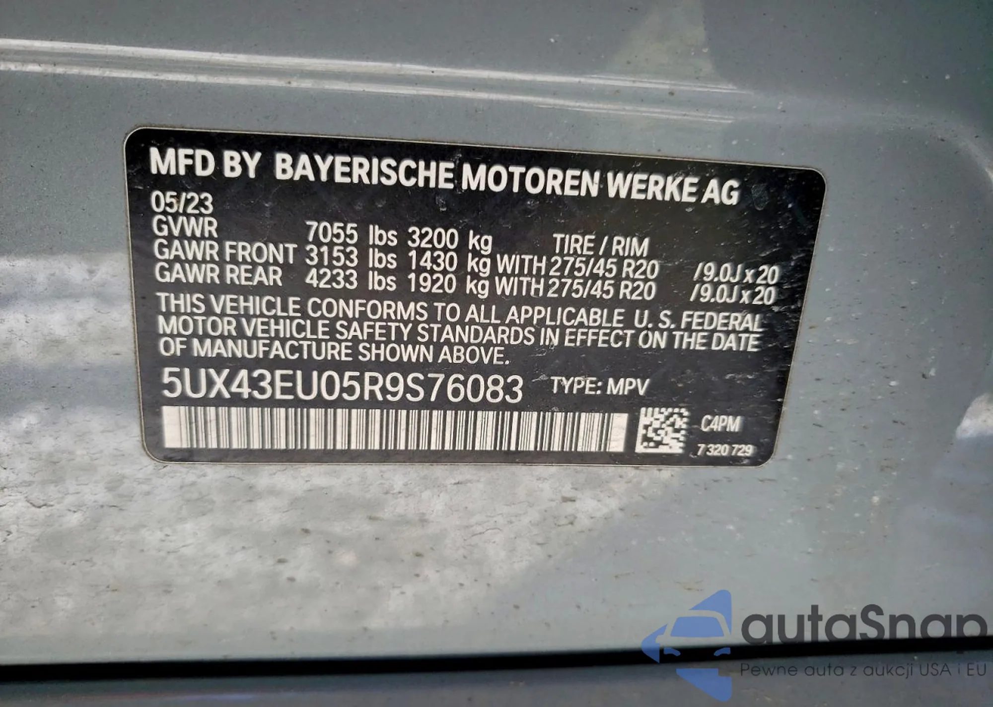 The car BMW X5 2024 (VIN 5UX43EU05R9S76083) has not been auctioned before. The documents are clean, and the mileage matches or is below the market average. Sold by an insurance company – we recommend purchase. Delivery to the port will take approx. 6–8 weeks.