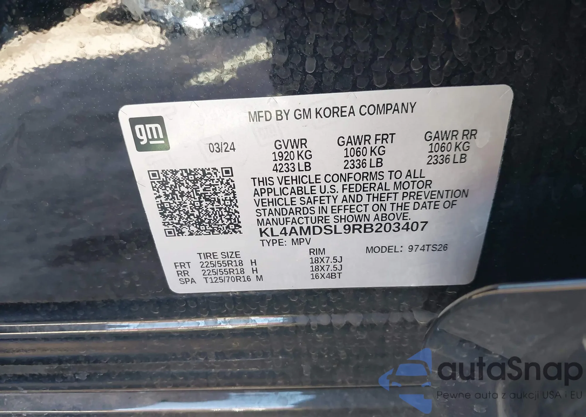 • VIN: KL4AMDSL9RB203407
