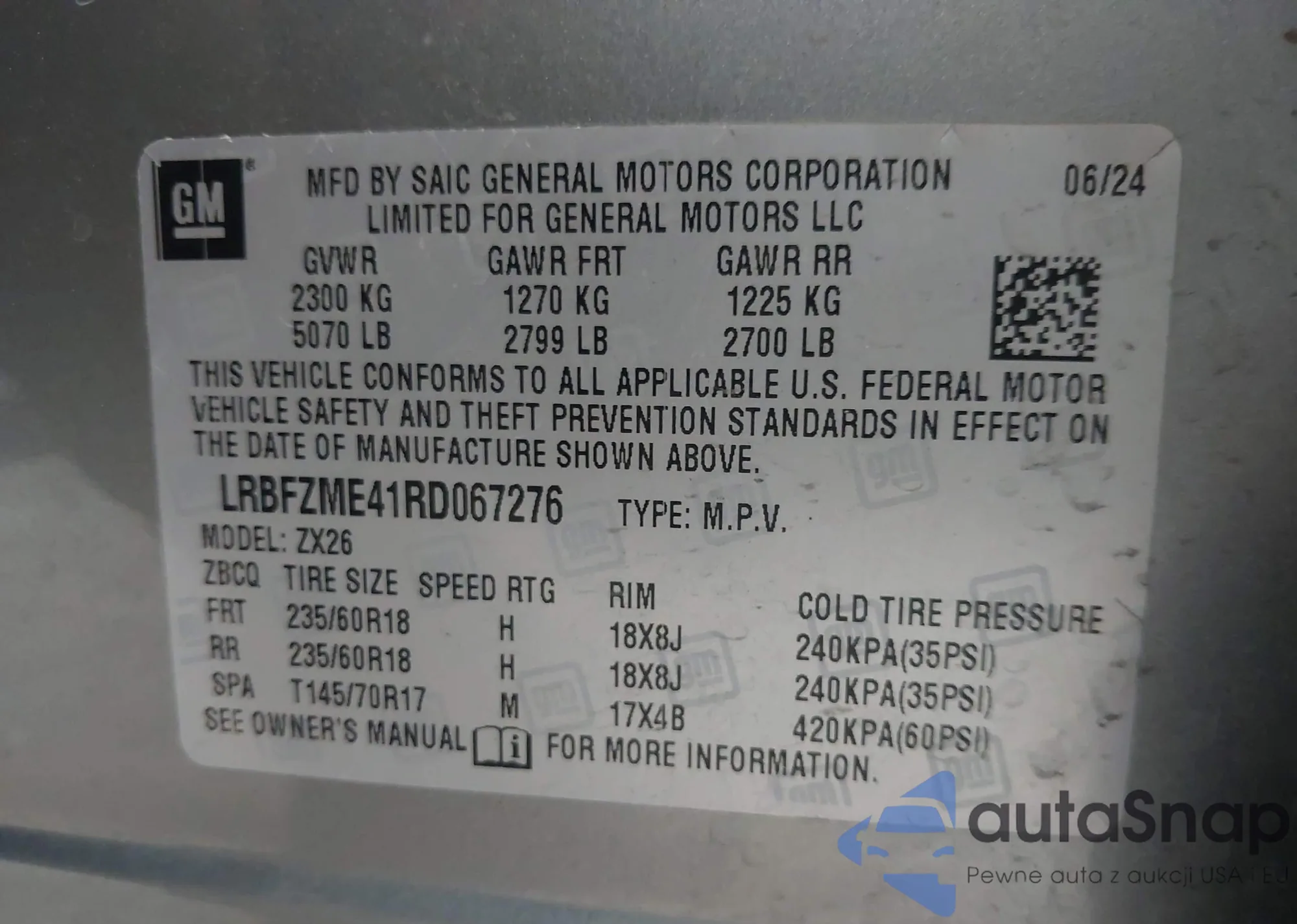 VIN: LRBFZME41RD067276