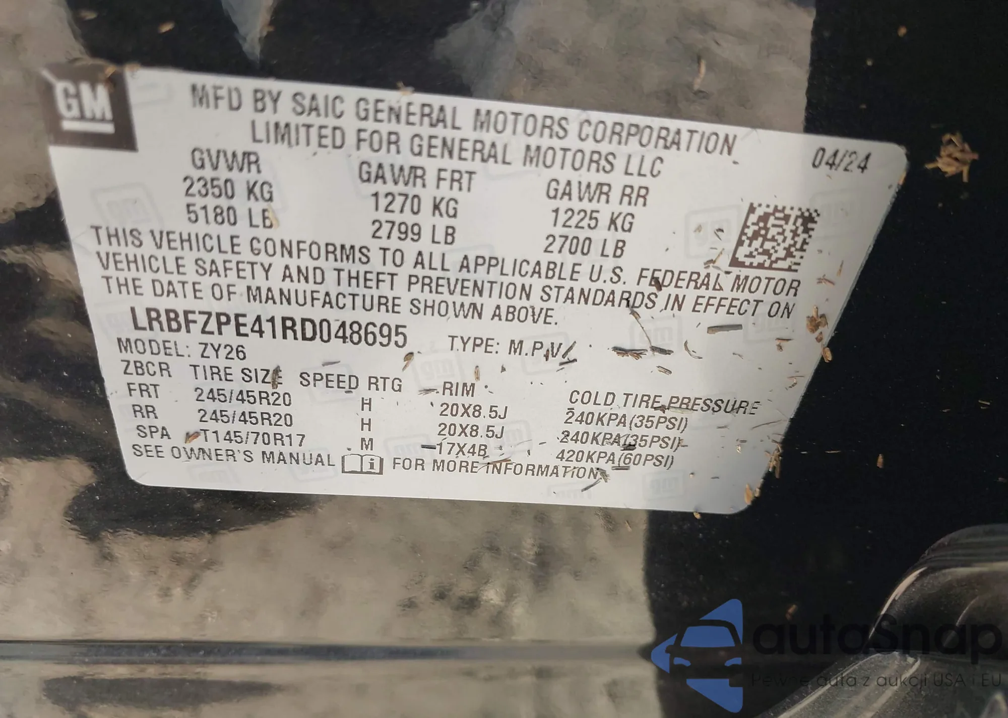 VIN: LRBFZPE41RD048695