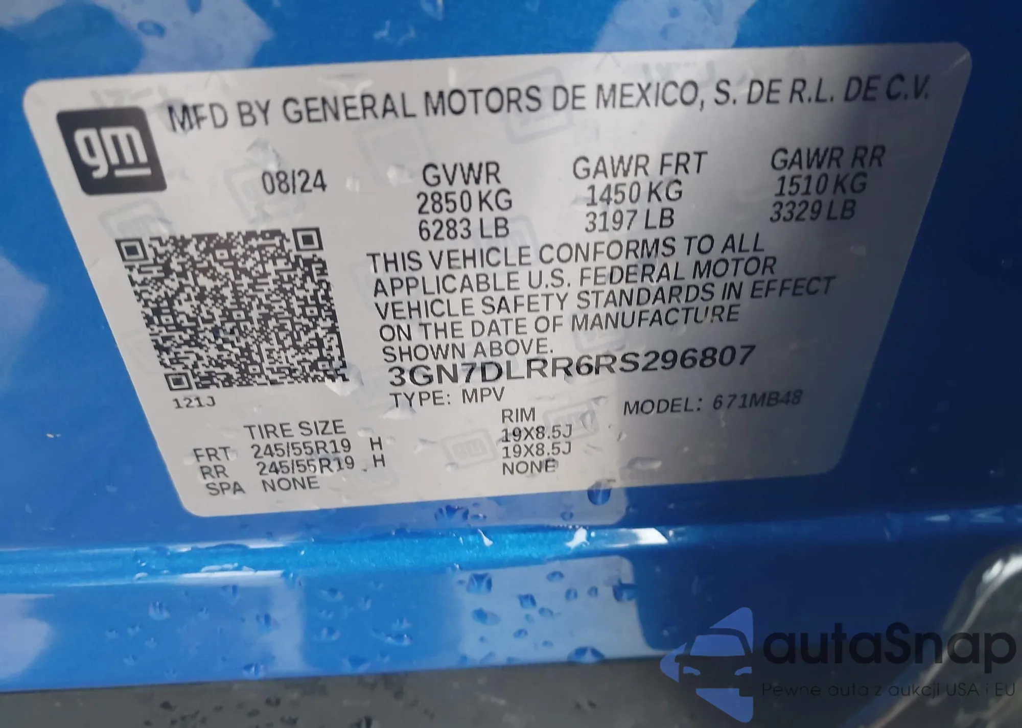 VIN: 3GN7DLRR6RS296807