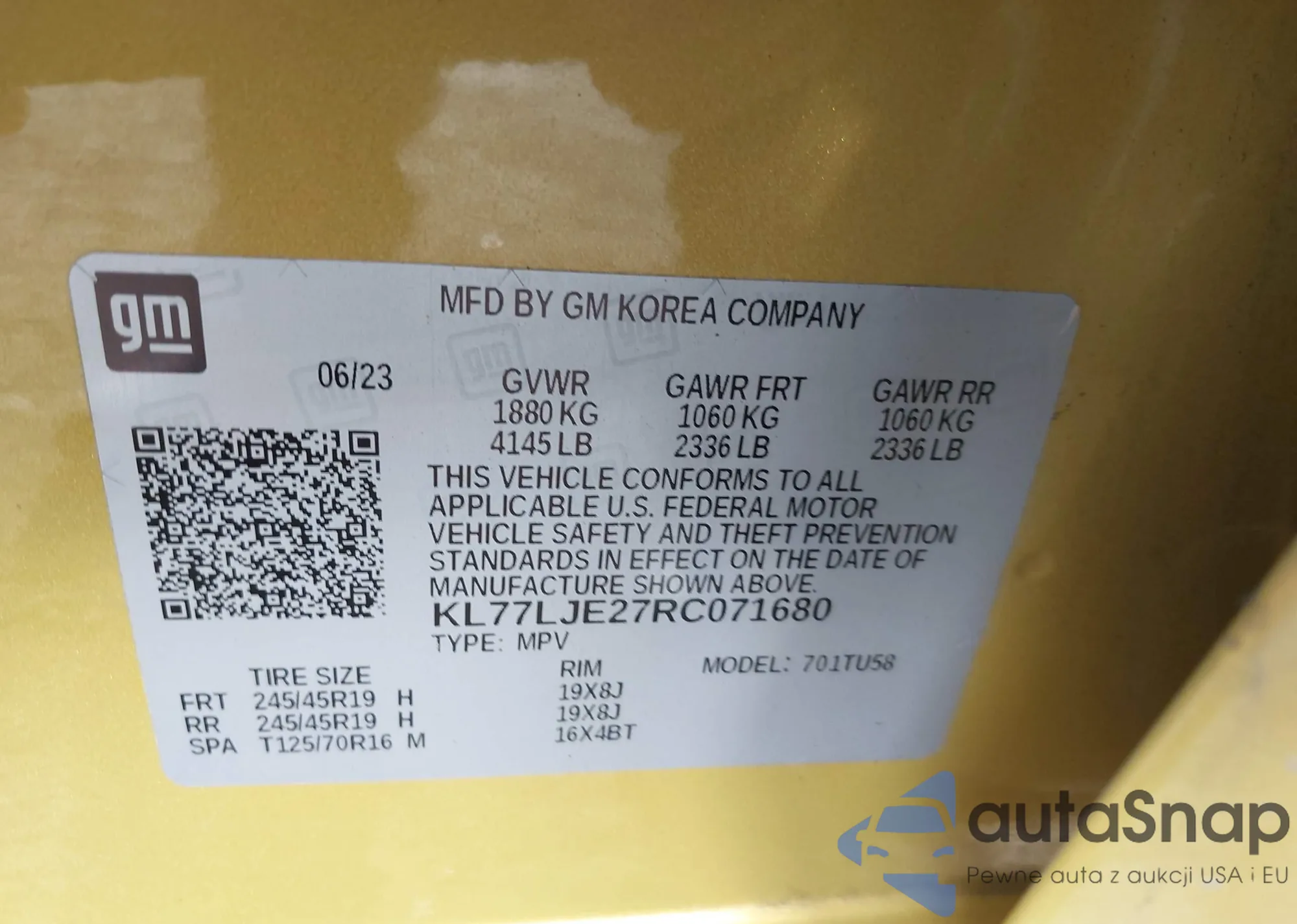 VIN: KL77LJE27RC071680