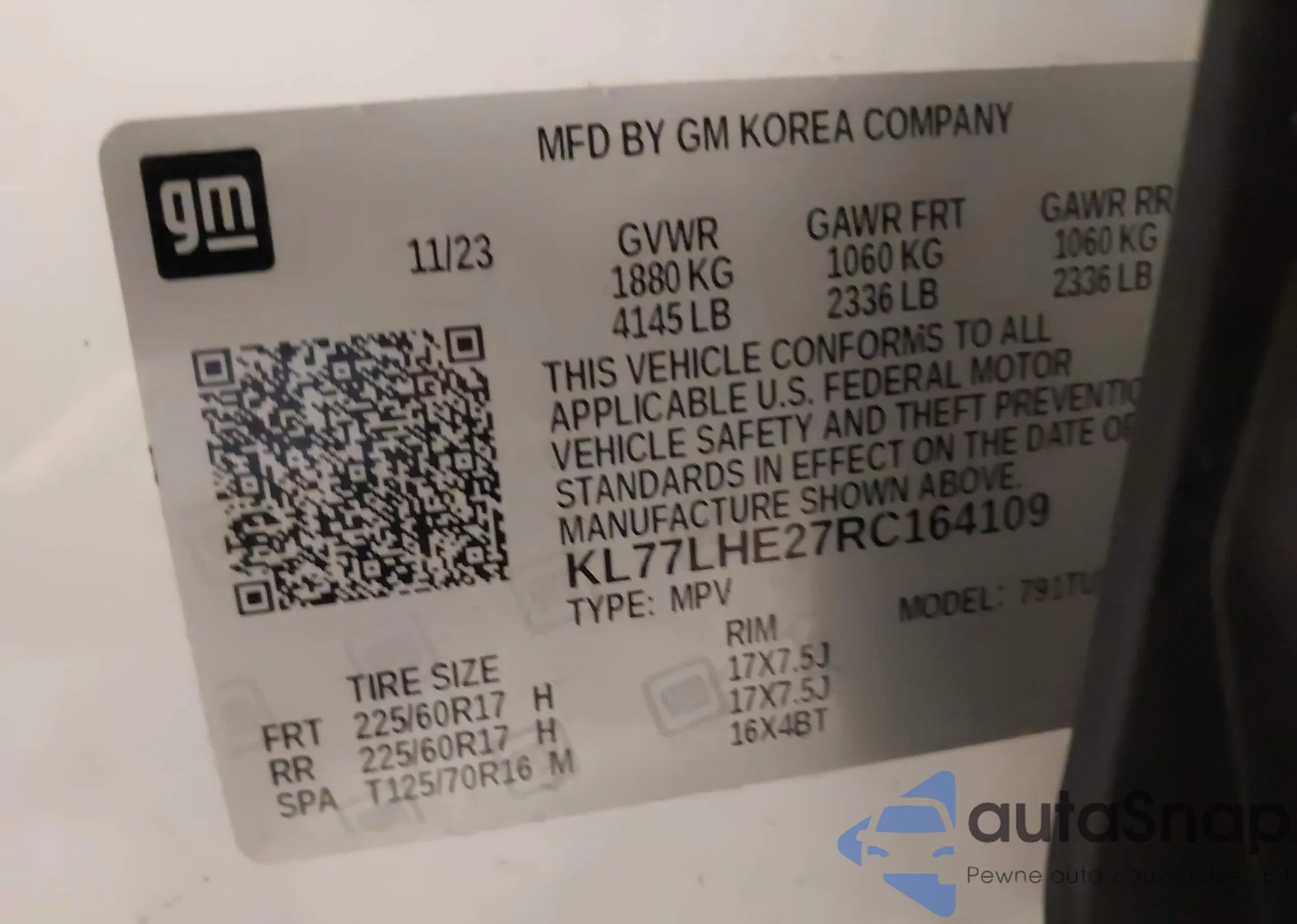 VIN: KL77LHE27RC164109