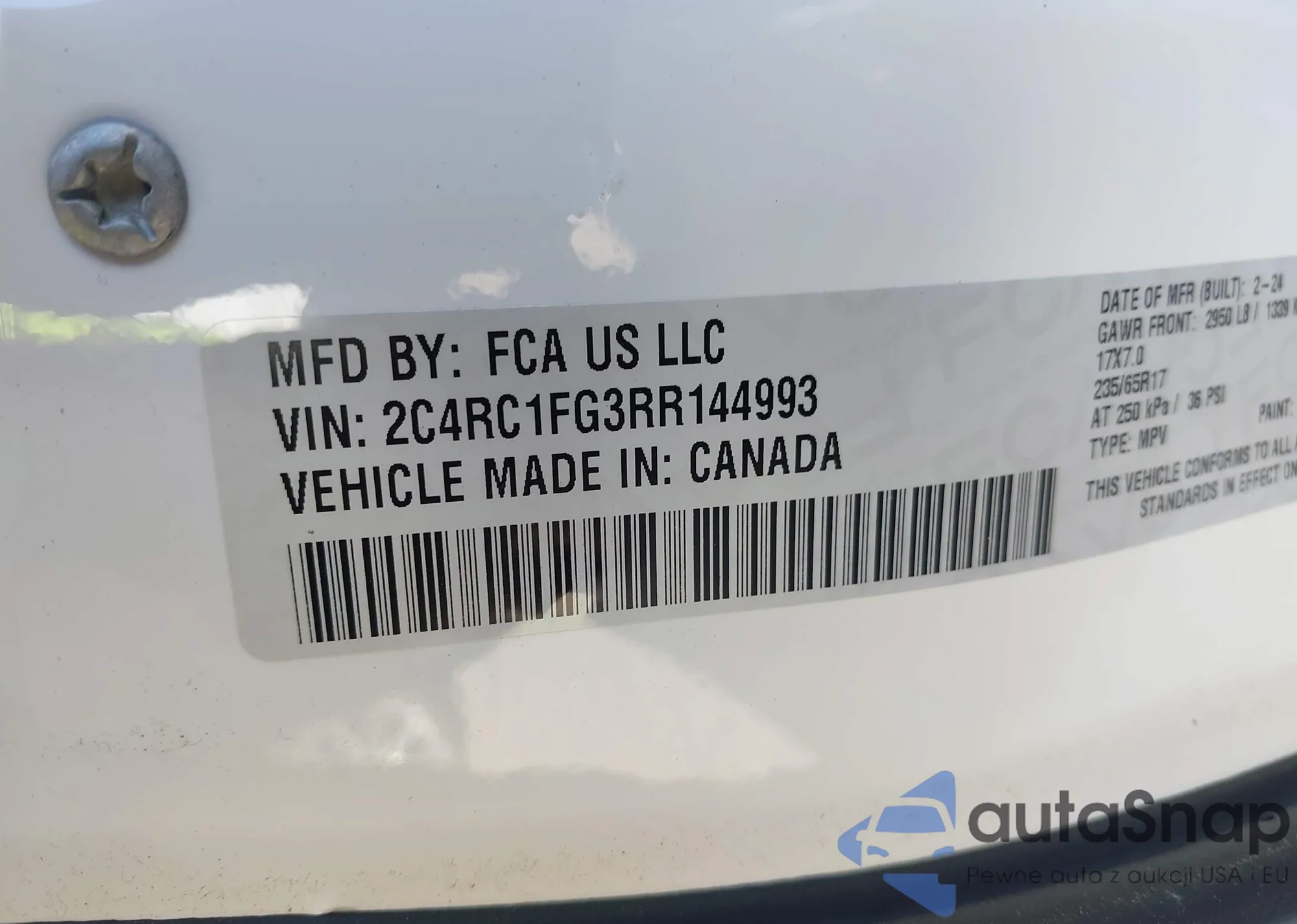 • VIN: 2C4RC1FG3RR144993