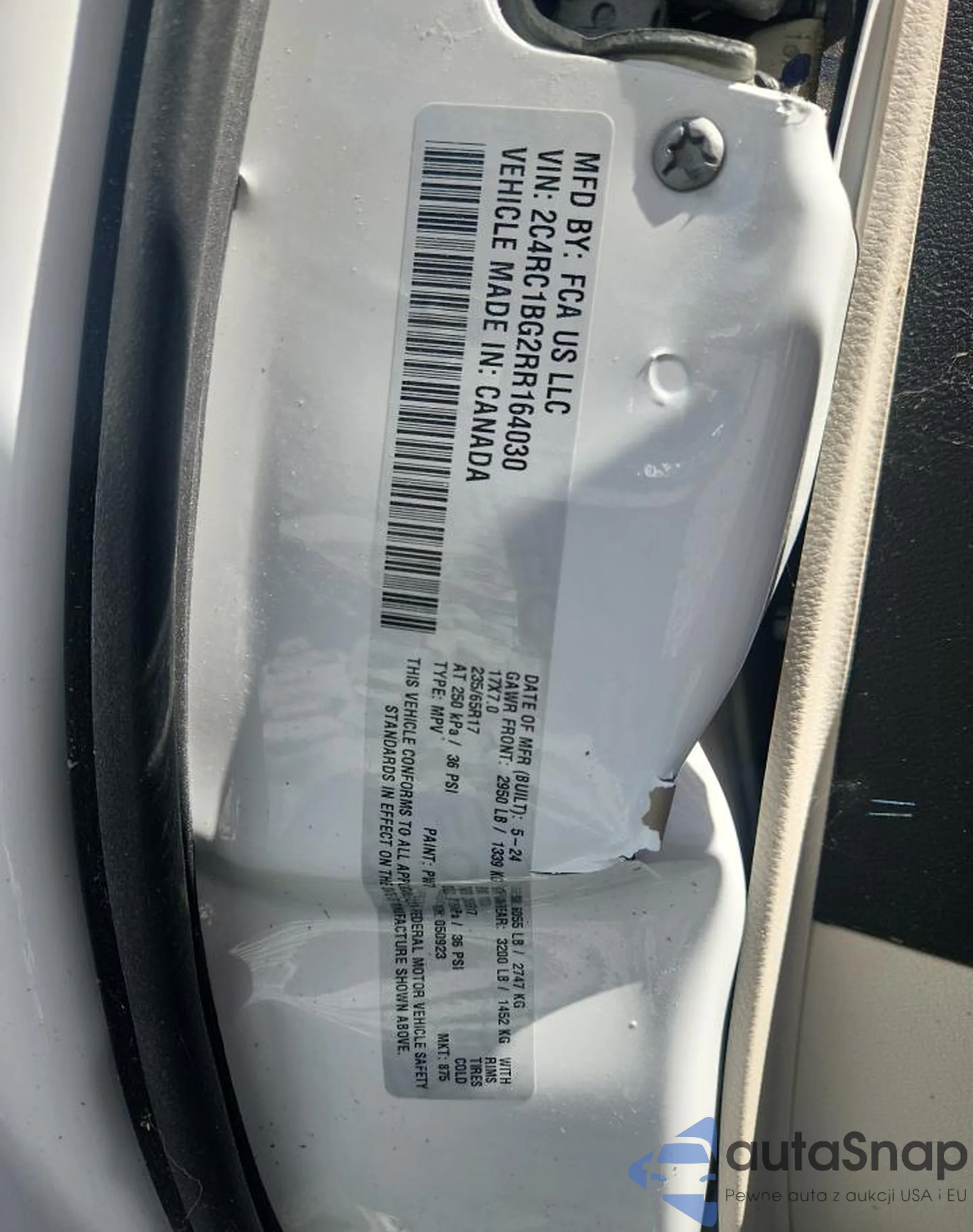 VIN: 2C4RC1BG2RR164030