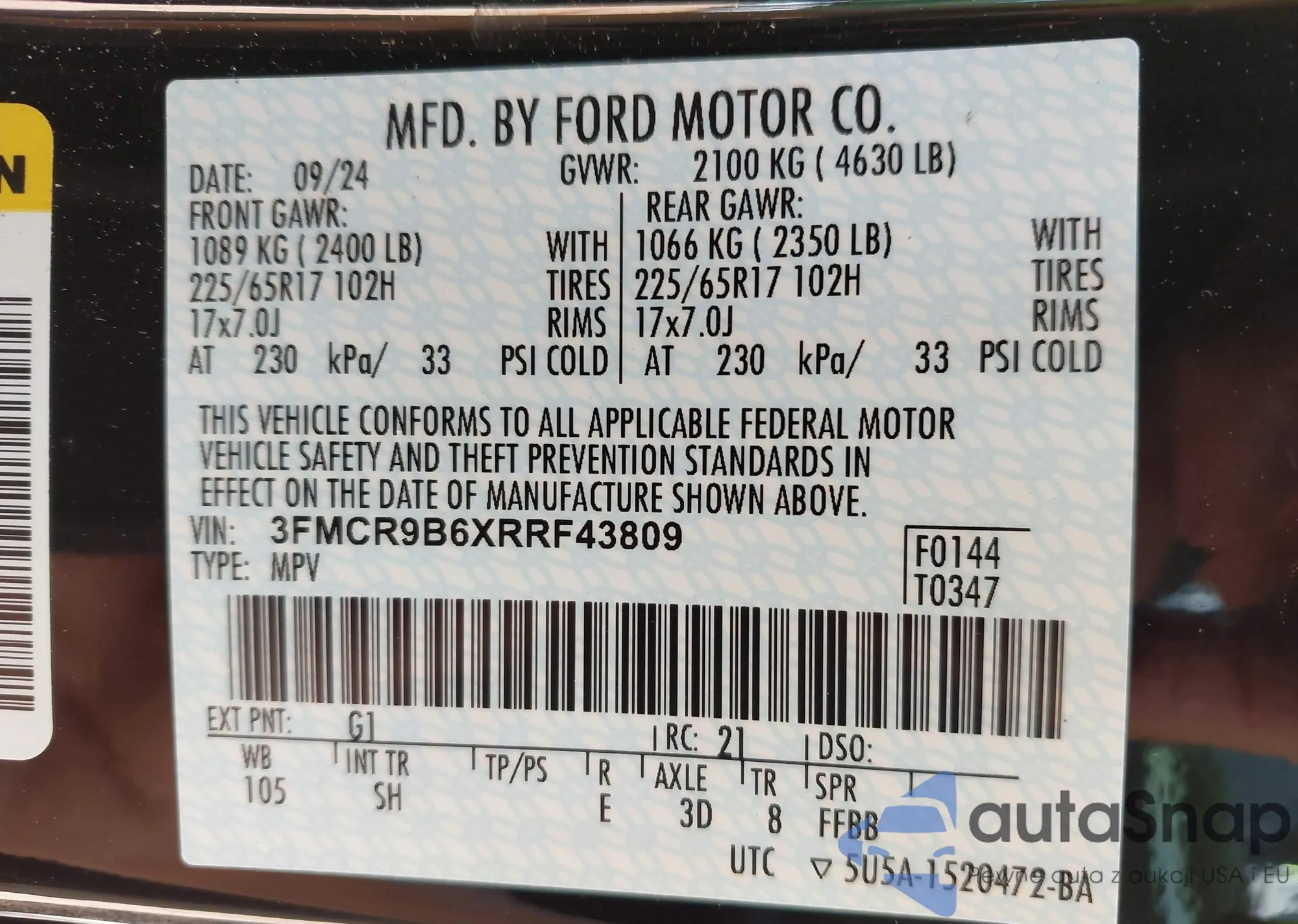 VIN: 3FMCR9B6XRRF43809