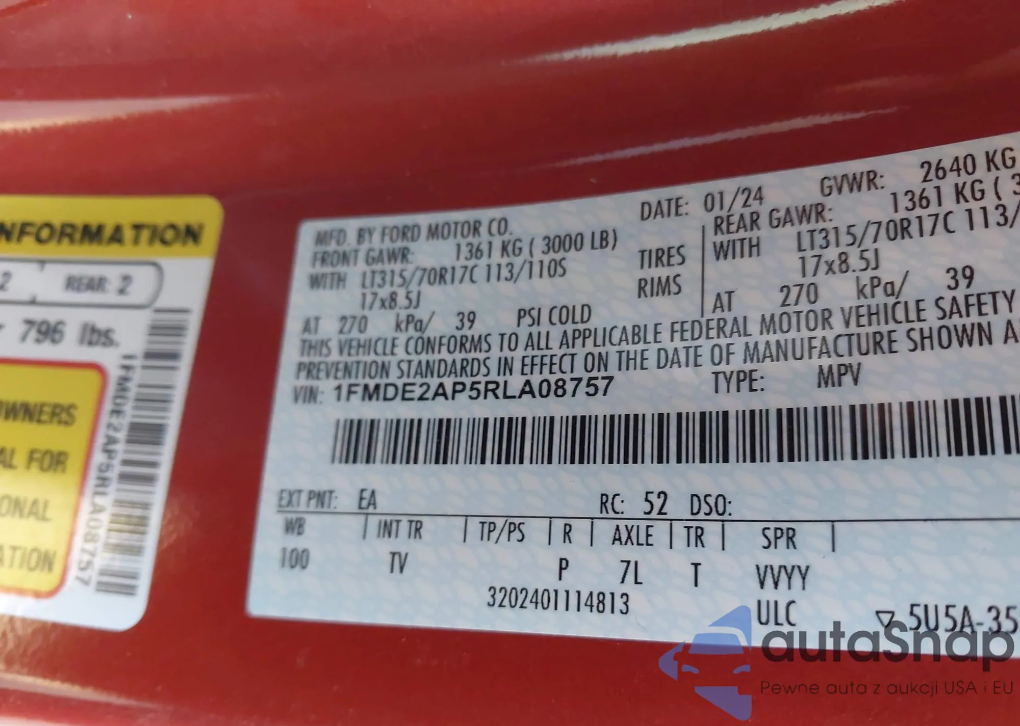 • VIN: 1FMDE2AP5RLA08757