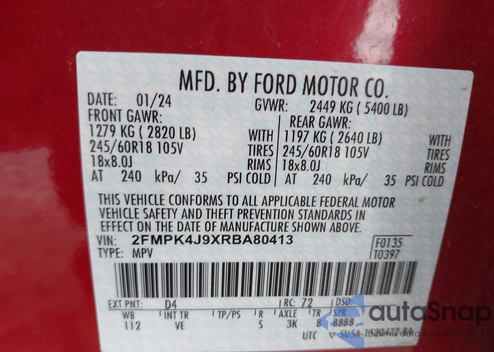 VIN: 2FMPK4J9XRBA80413
