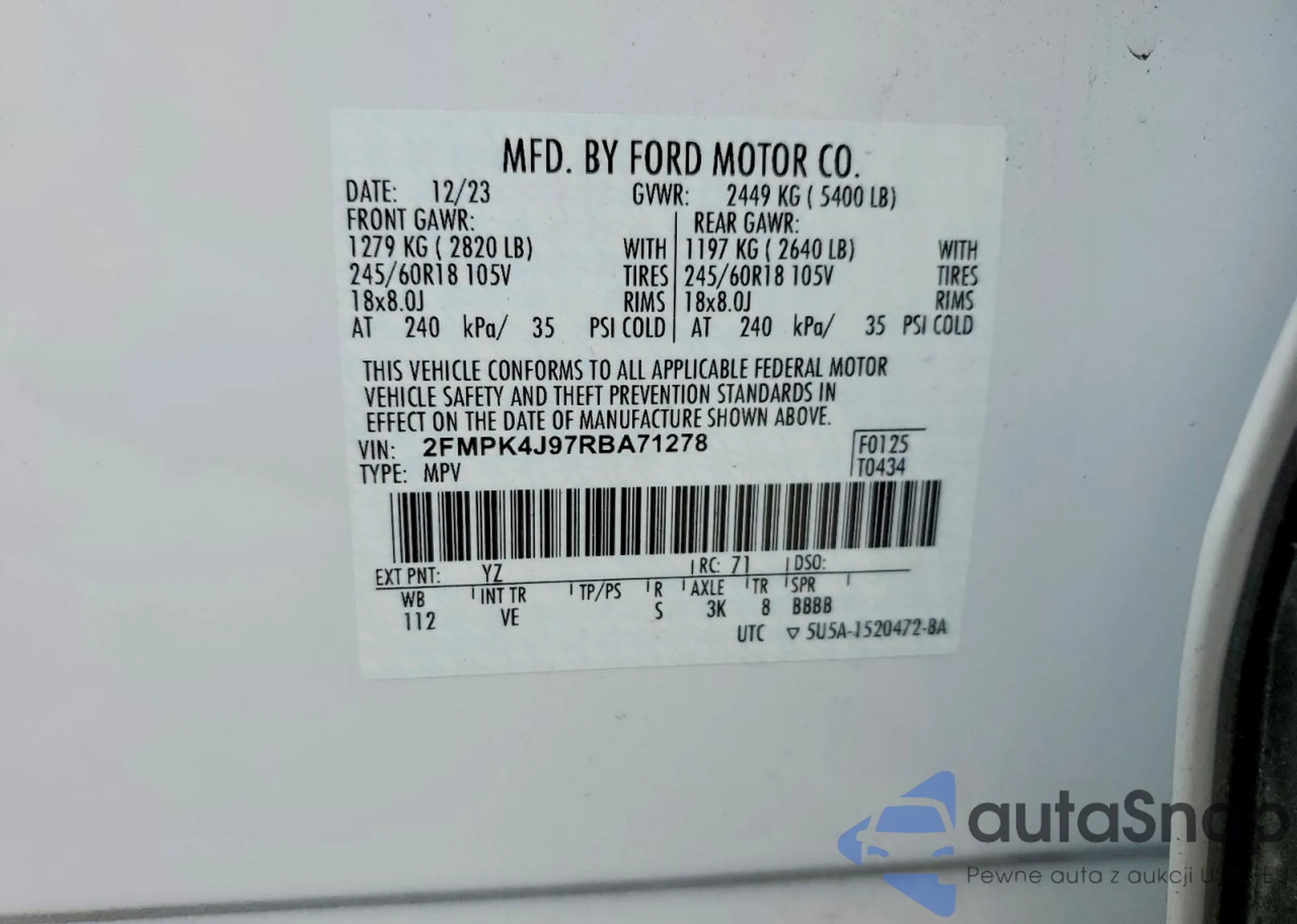 The car Ford Edge 2024 (VIN 2FMPK4J97RBA71278) has not been auctioned before. The documents are clean, and the mileage matches or is below the market average. Sold by an insurance company – we recommend purchase. Delivery to the port will take approx. 6–8 weeks.