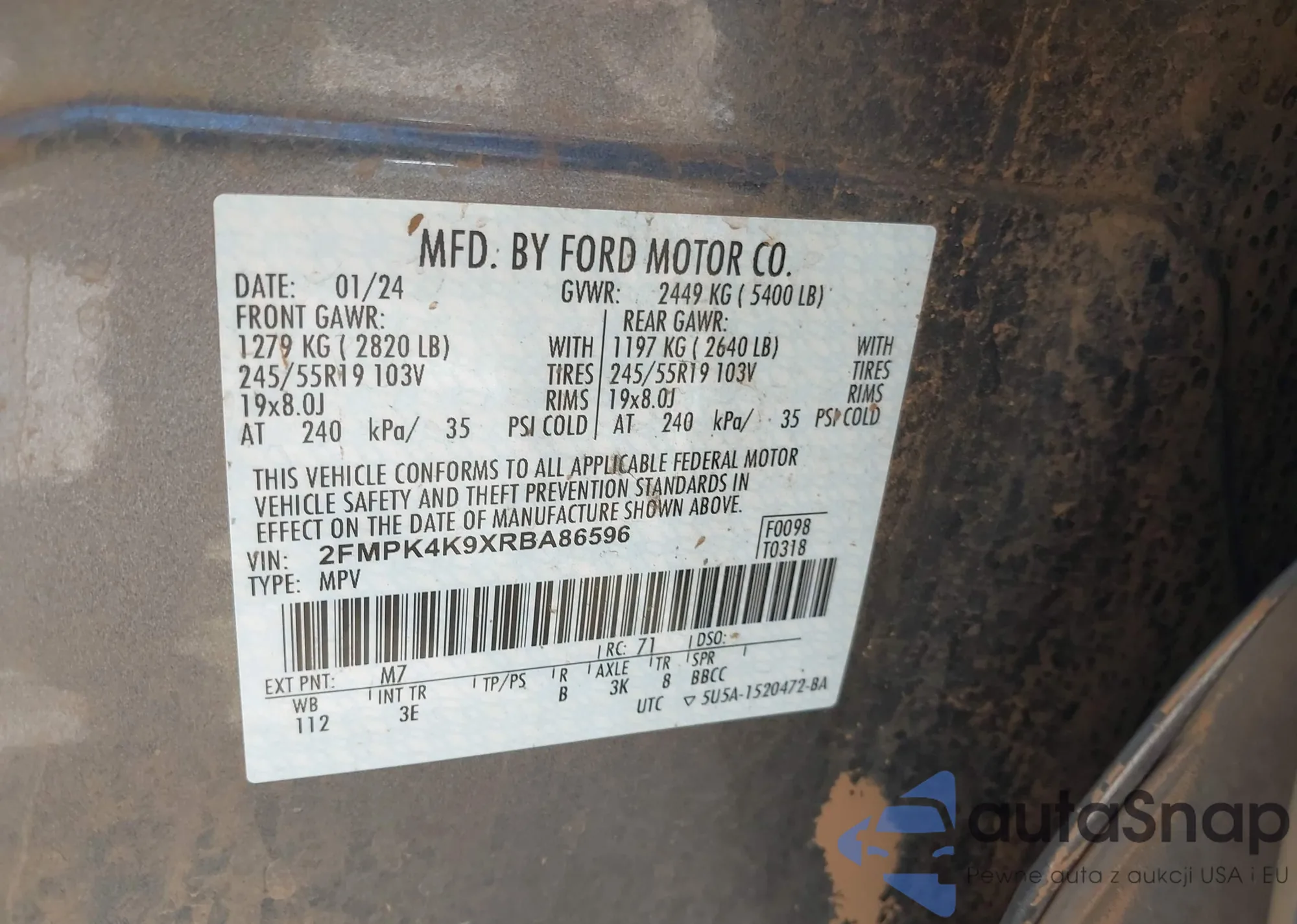VIN: 2FMPK4K9XRBA86596