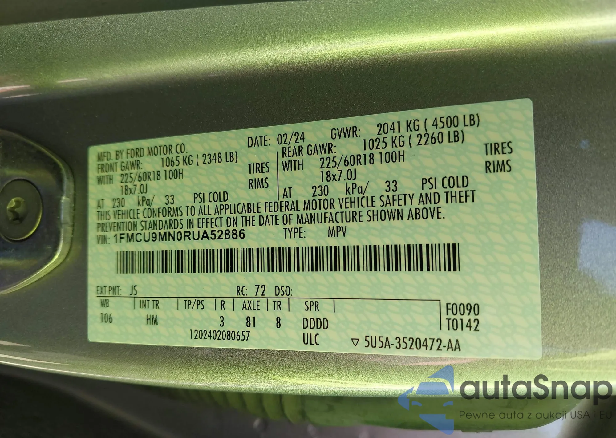 • VIN: 1FMCU9MN0RUA52886