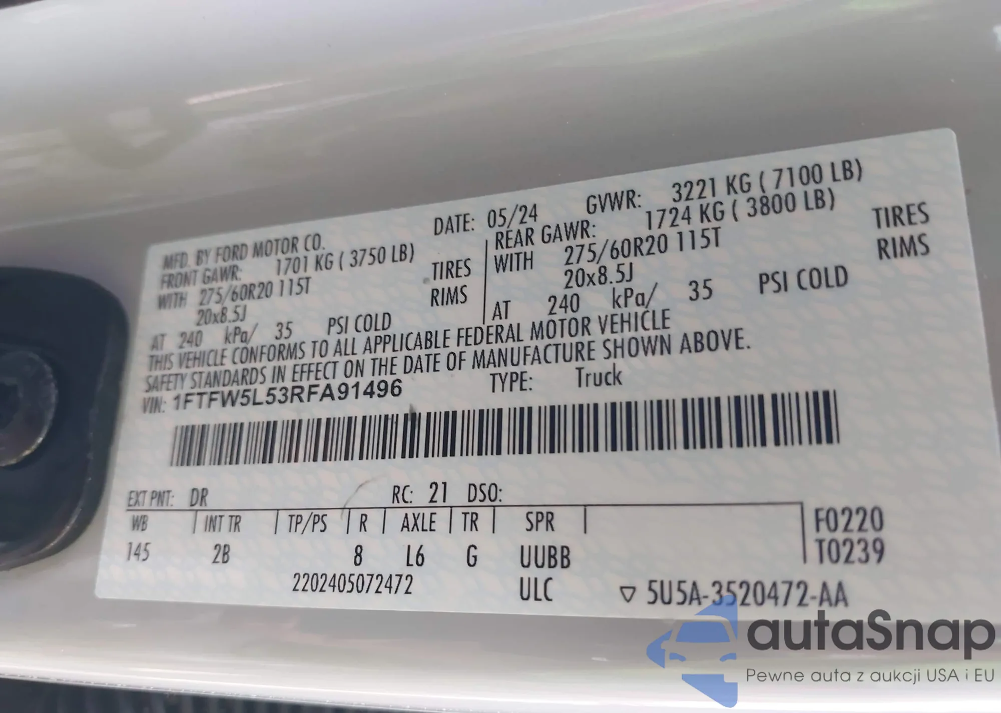 VIN: 1FTFW5L53RFA91496