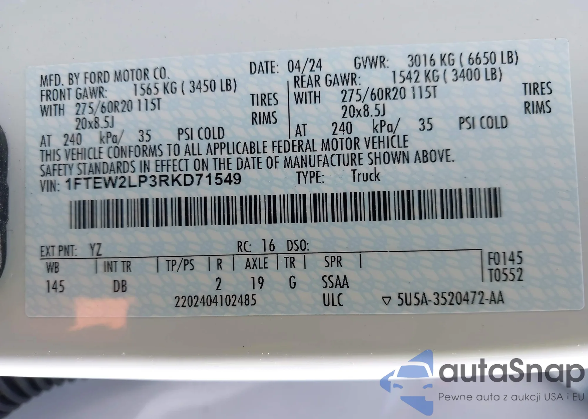 VIN: 1FTEW2LP3RKD71549