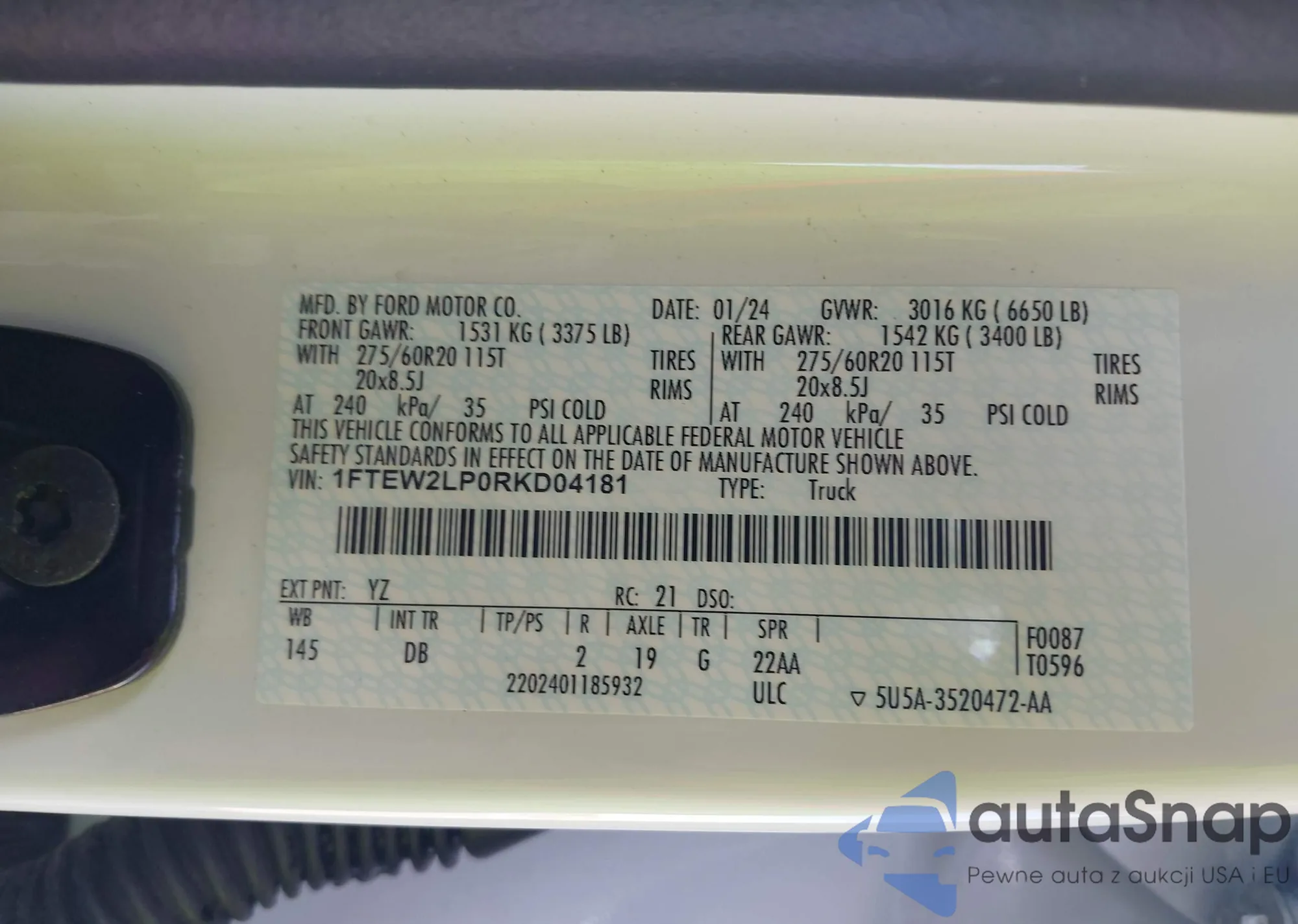 • VIN: 1FTEW2LP0RKD04181