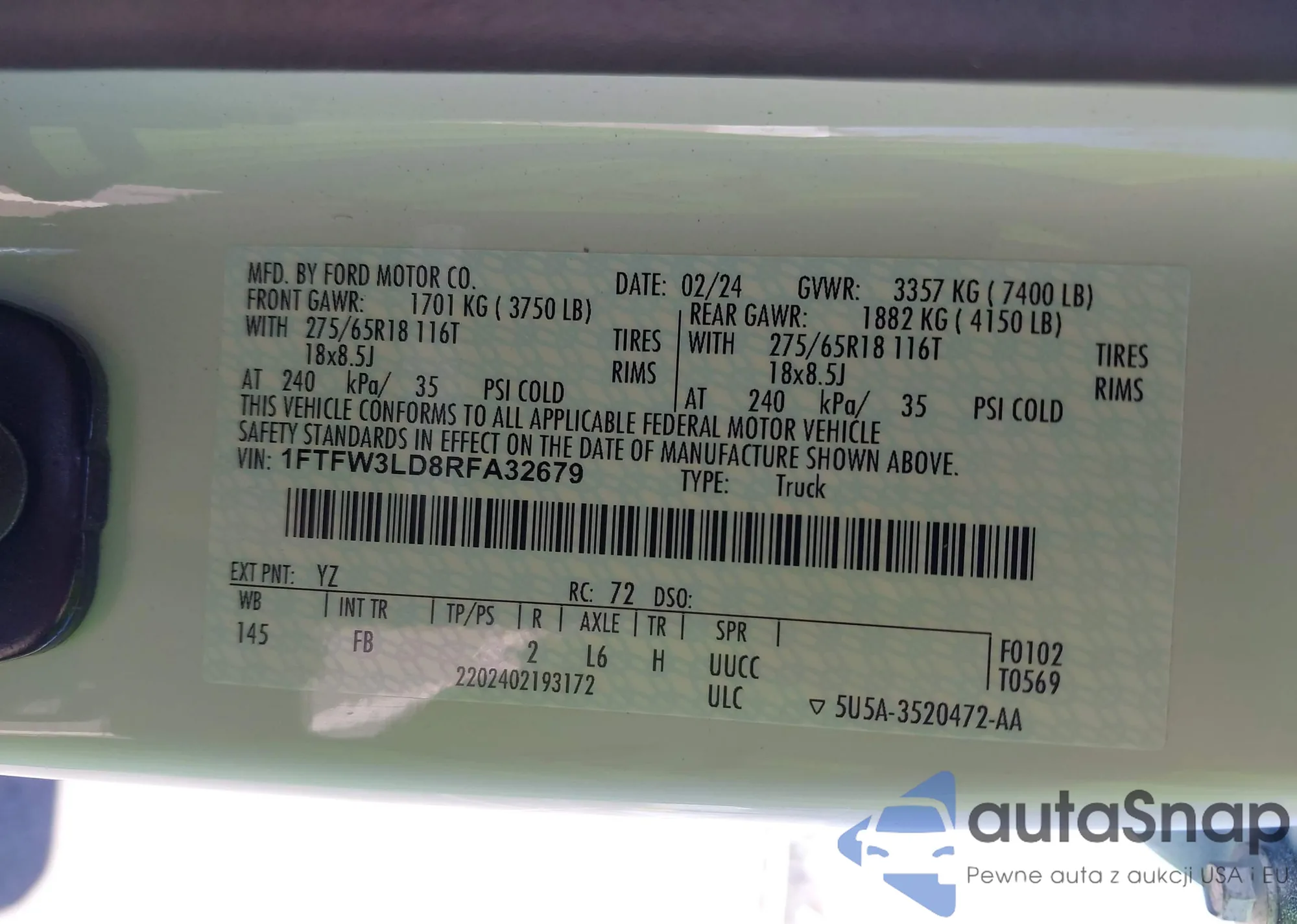 VIN: 1FTFW3LD8RFA32679